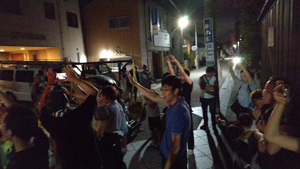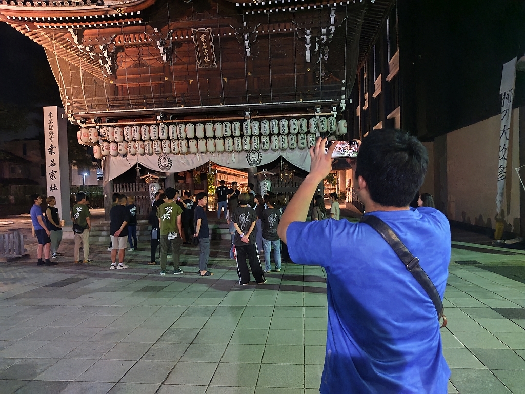 この日の上本町七夕会は初寄合だったので、一次会終わりに浴衣姿で練習に参加します。