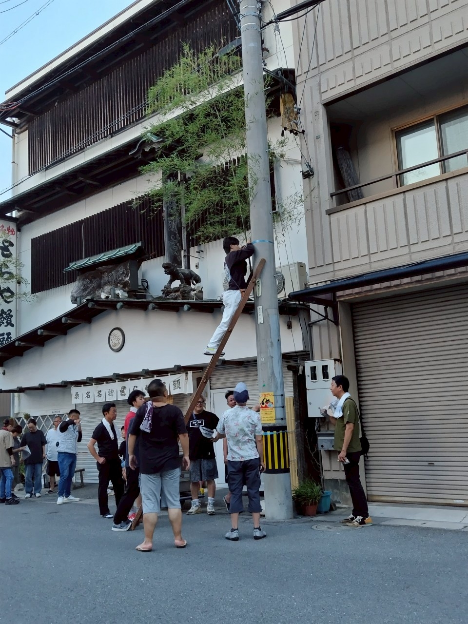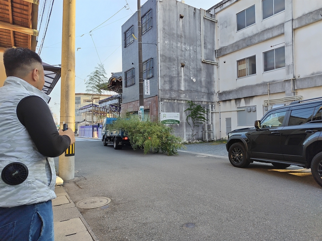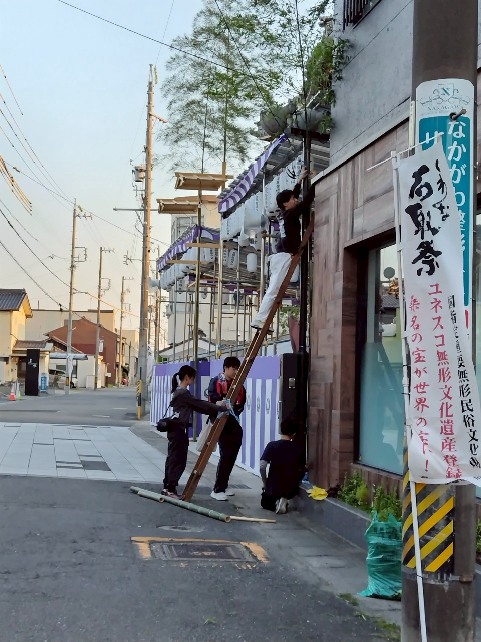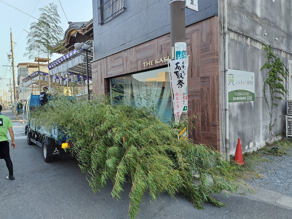 町境や各会宿、祭車停留場所、役員宅に笹を立てます。