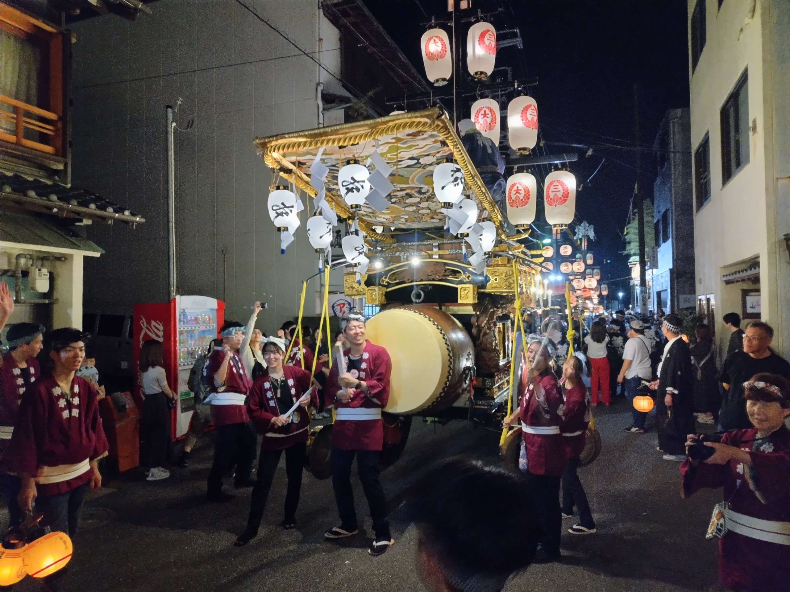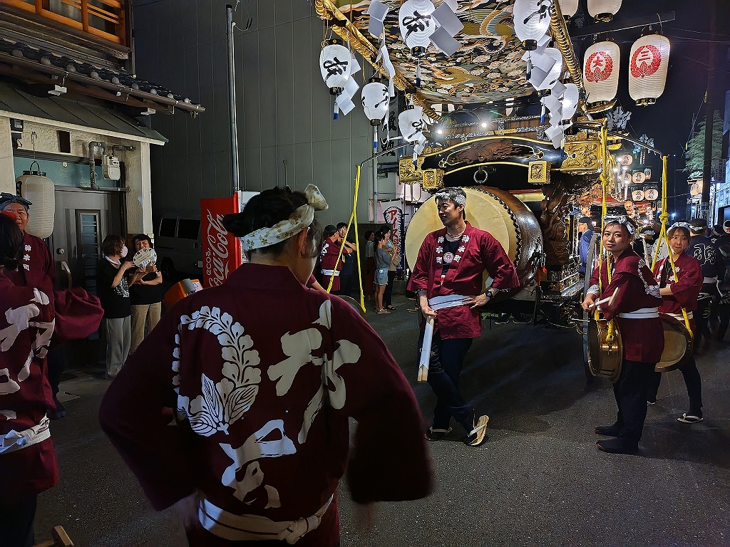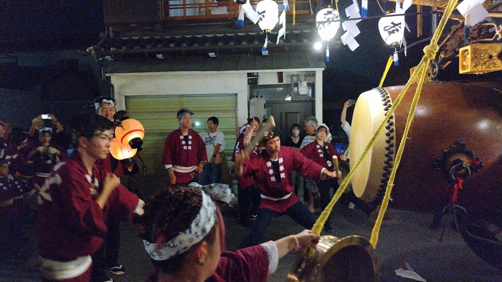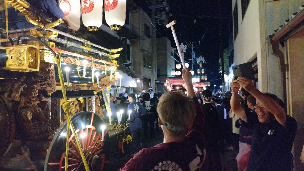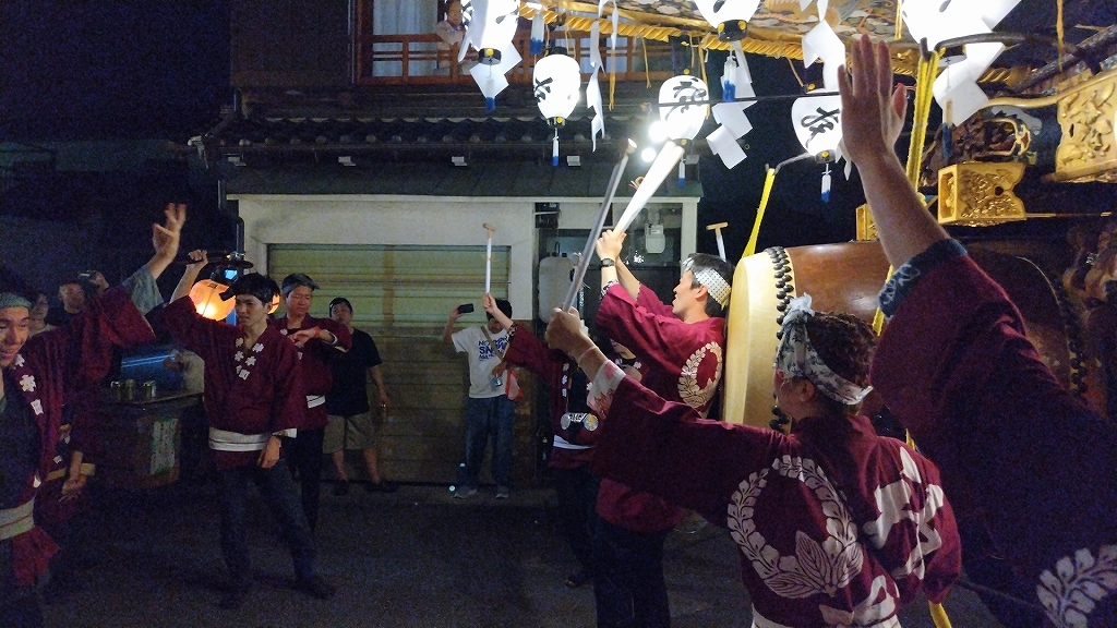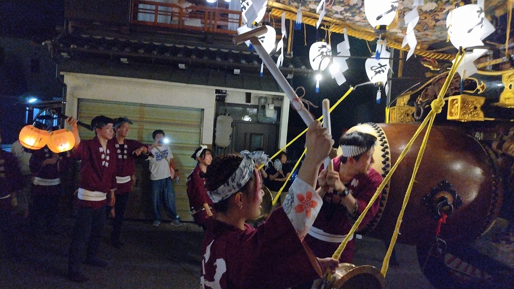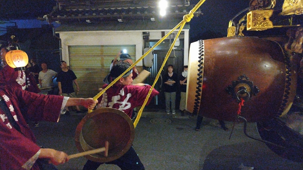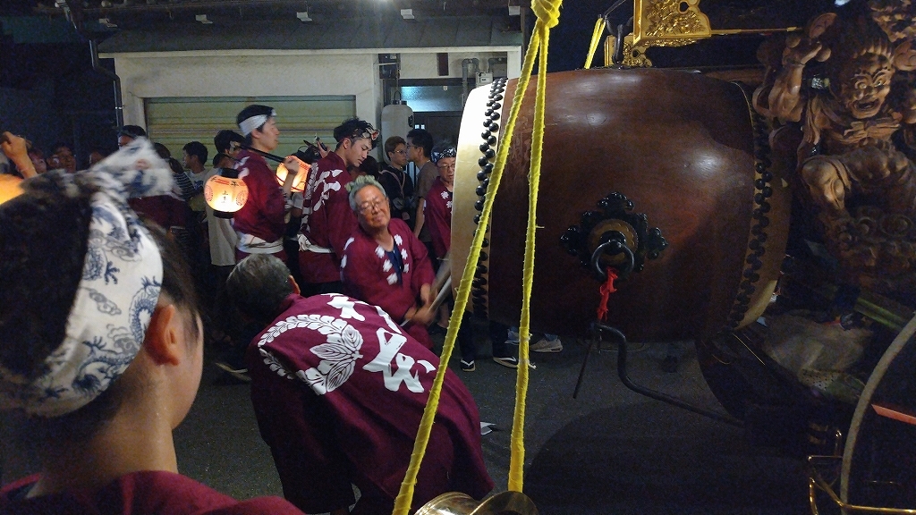 8/2 試楽日を迎え午前0時頃、神楽太鼓が鳴り、送り提燈で叩き出しの合図が送られます!