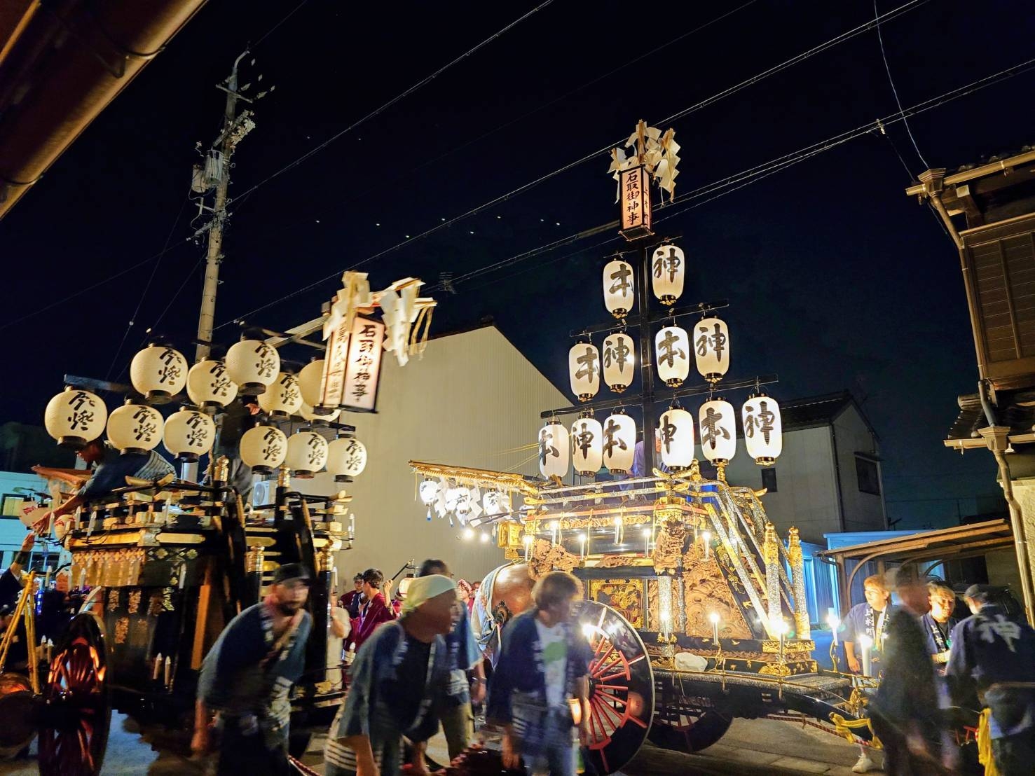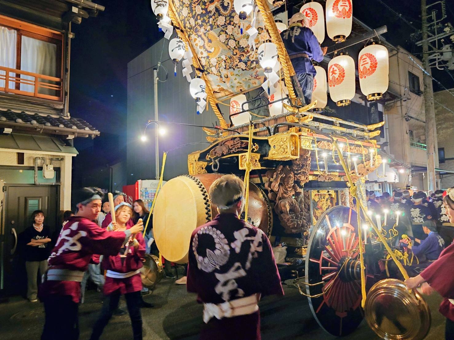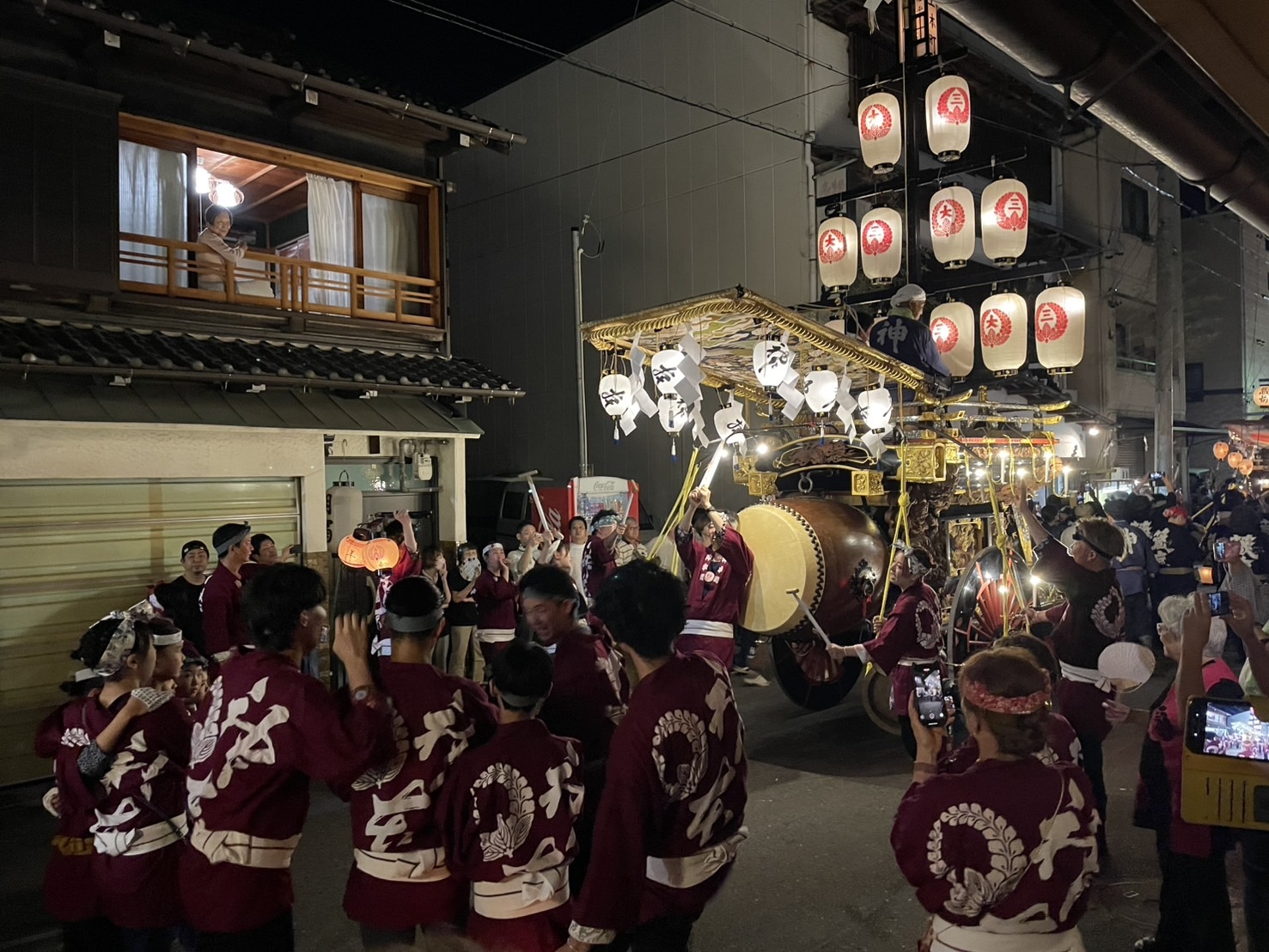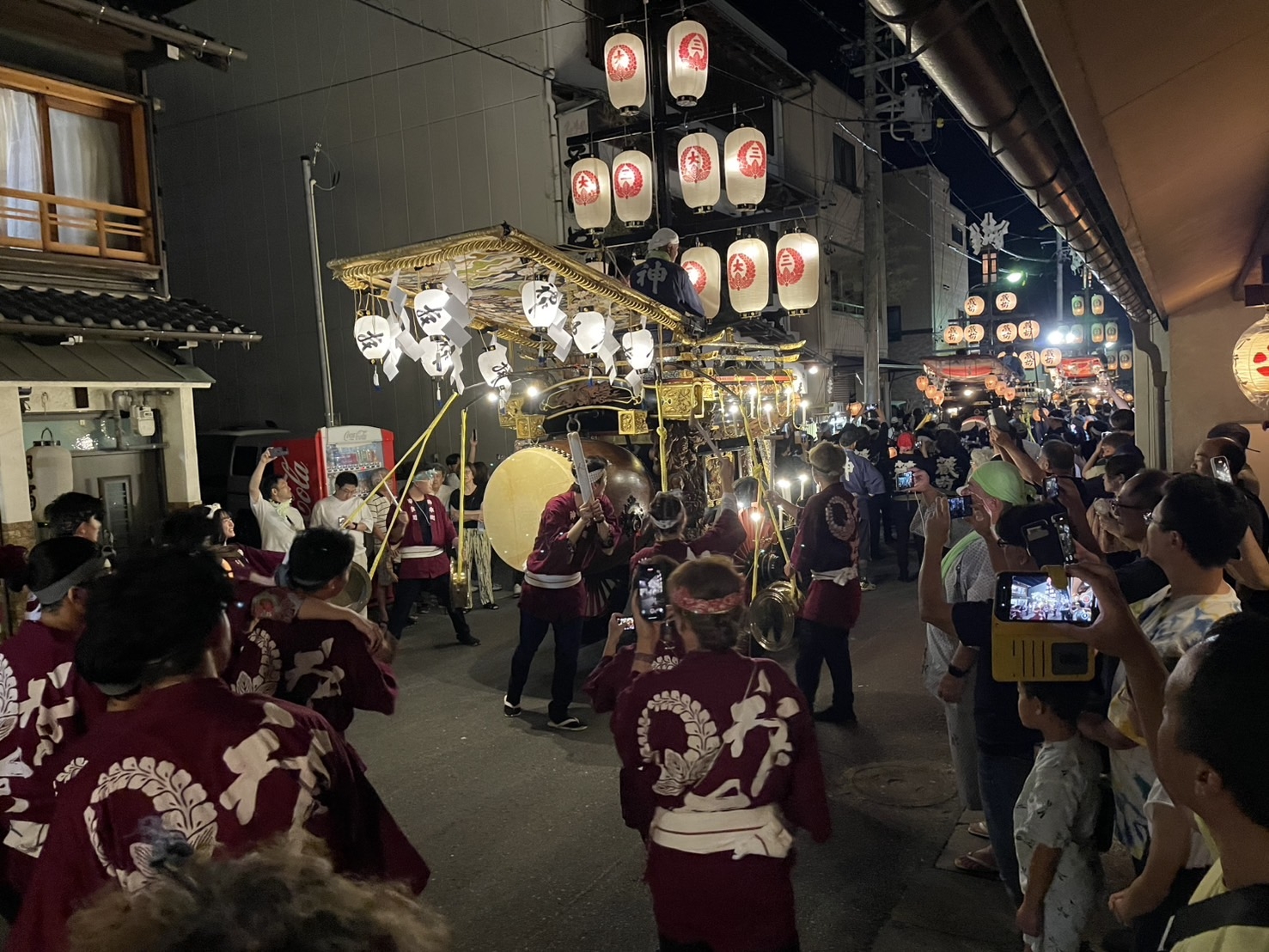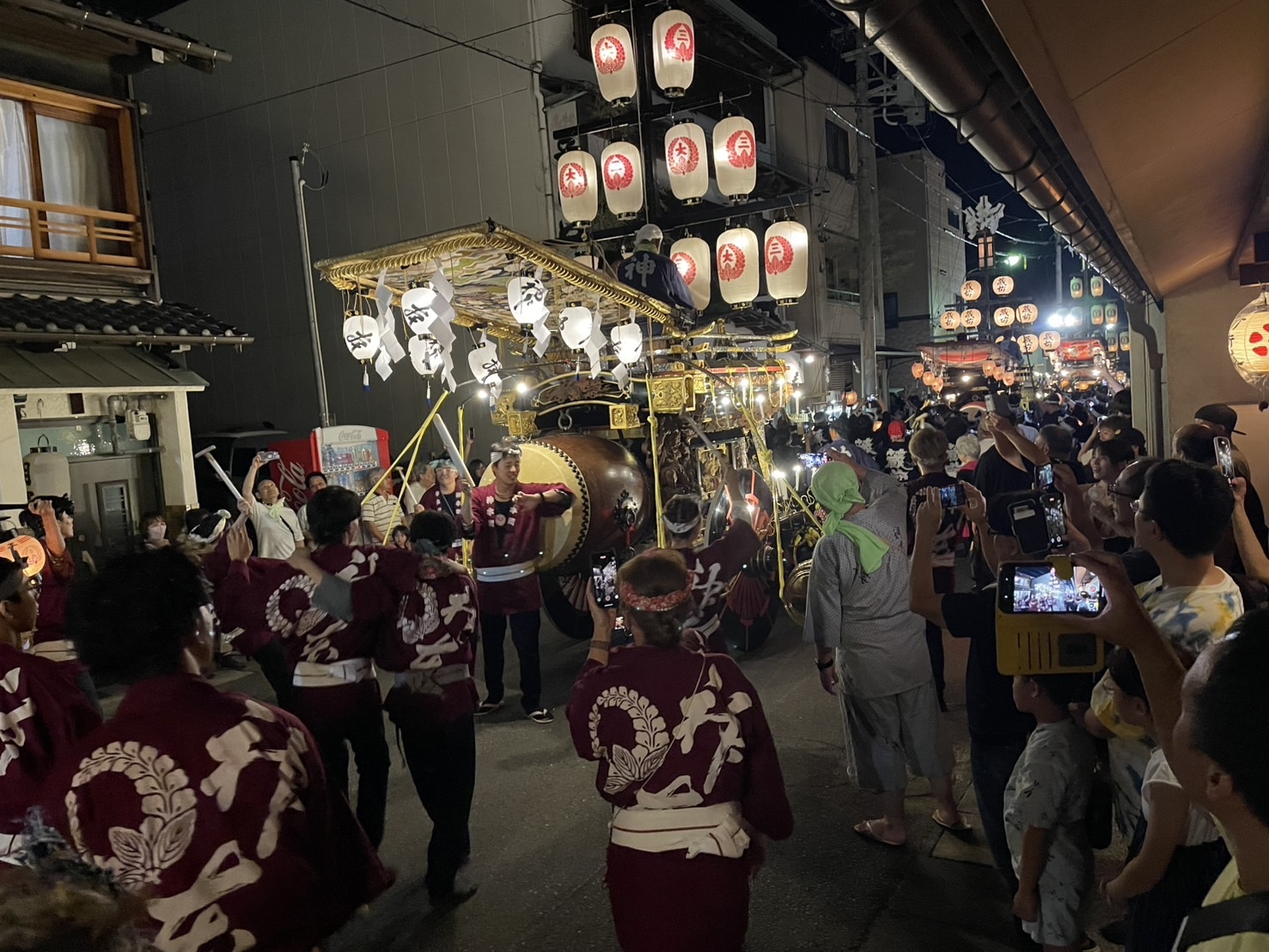 8/2 試楽日を迎え午前0時頃、神楽太鼓が鳴り、送り提燈で叩き出しの合図が送られます!