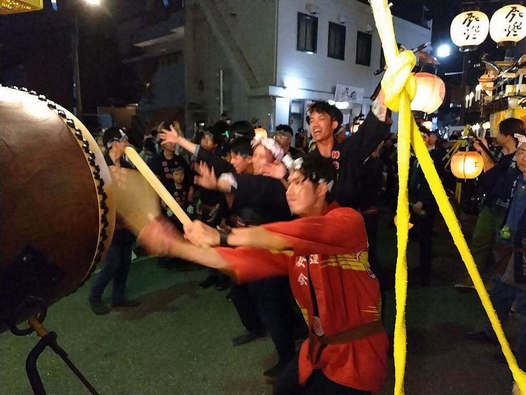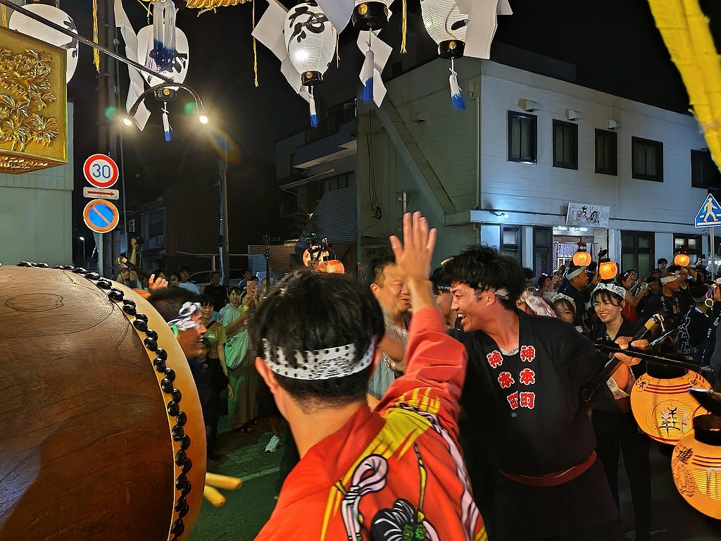 8/2 第一組祭車は玉重橋から花街筋へとやってきました!