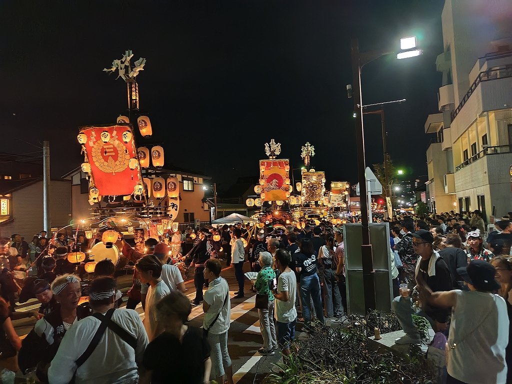 ただ八間通本町交差点までは屋台が出ているので、祭車を並べるのはなかなか難しいです。