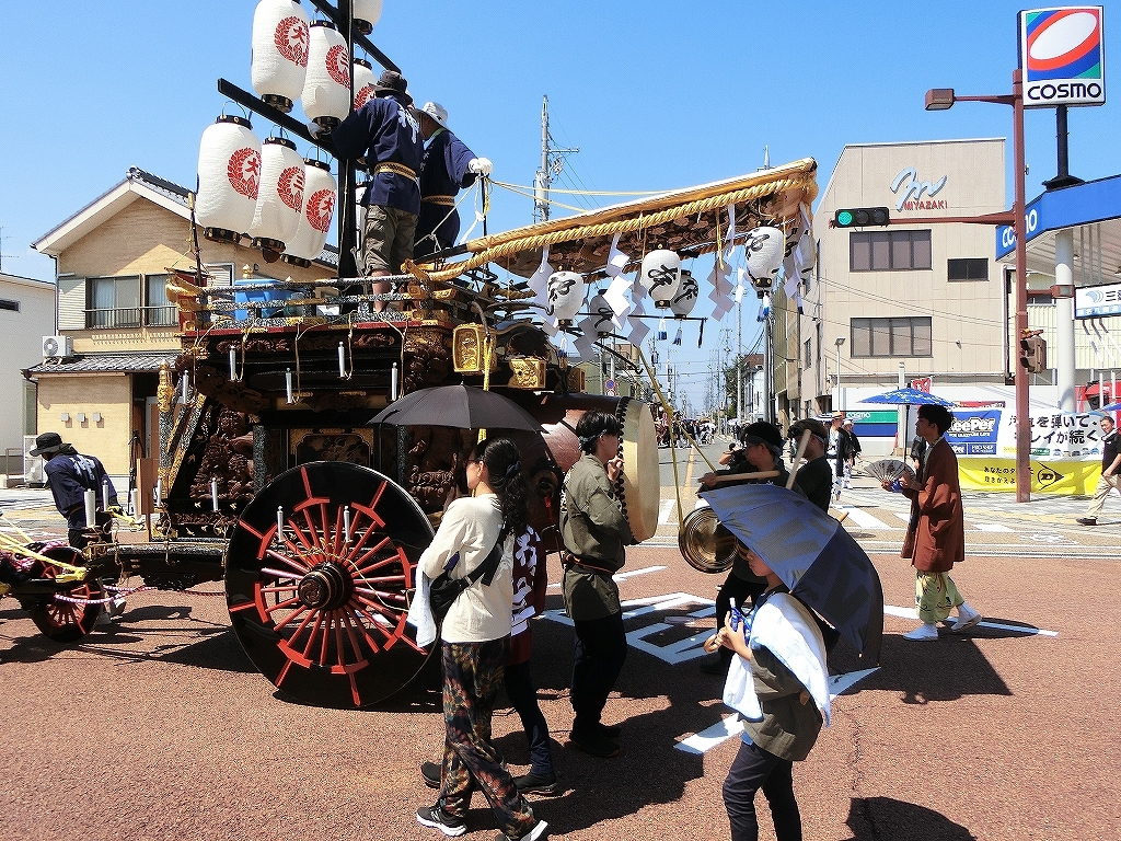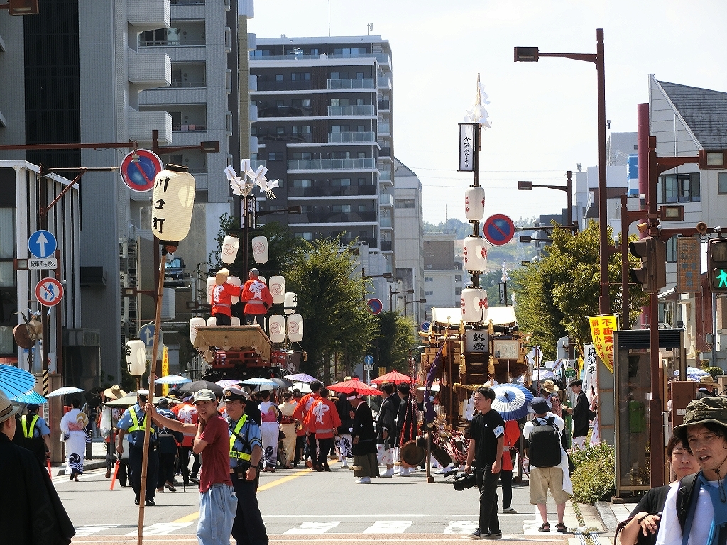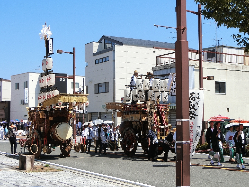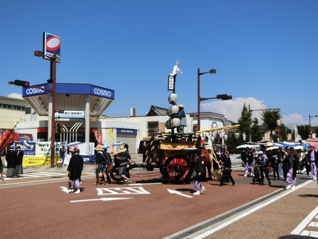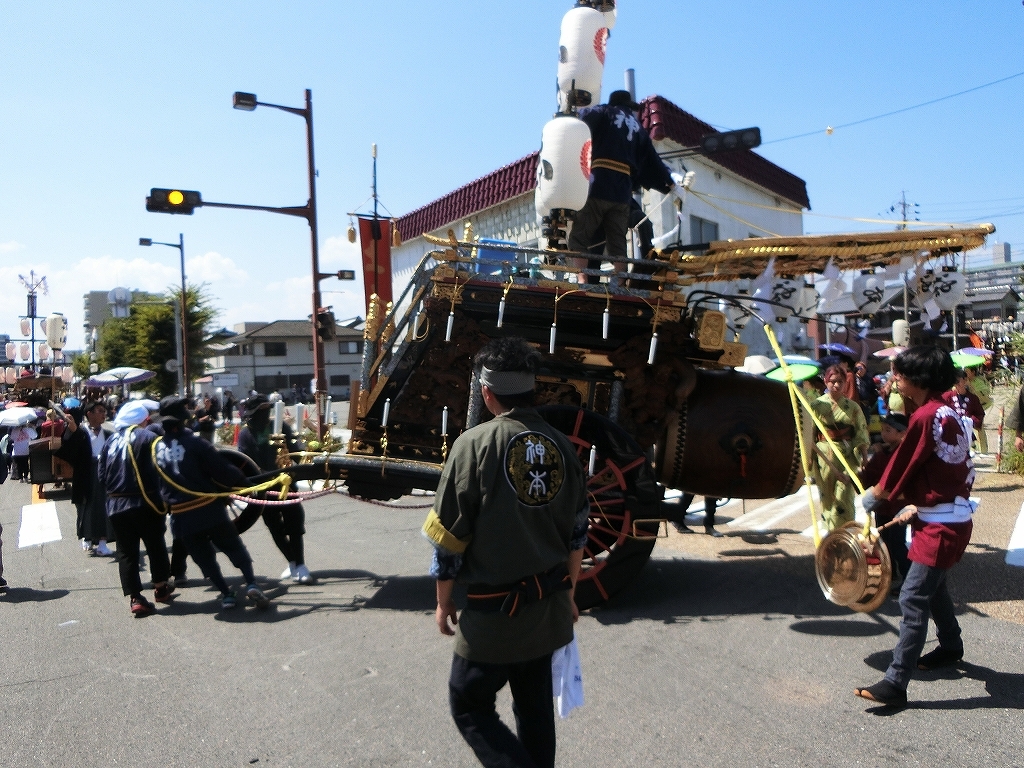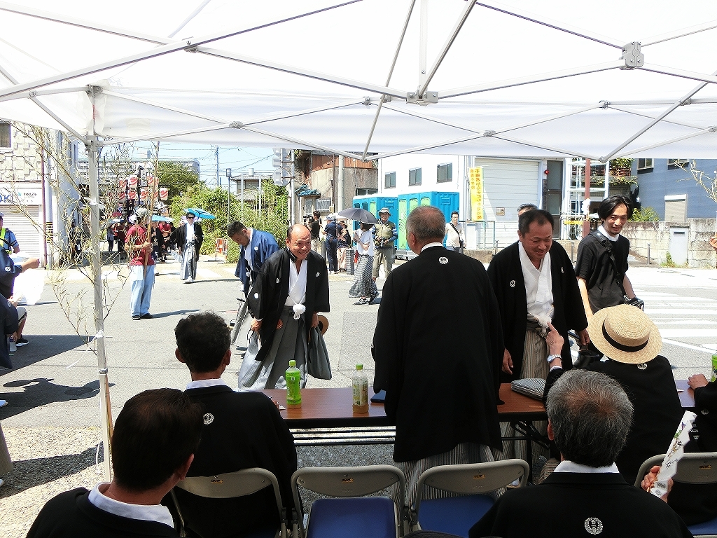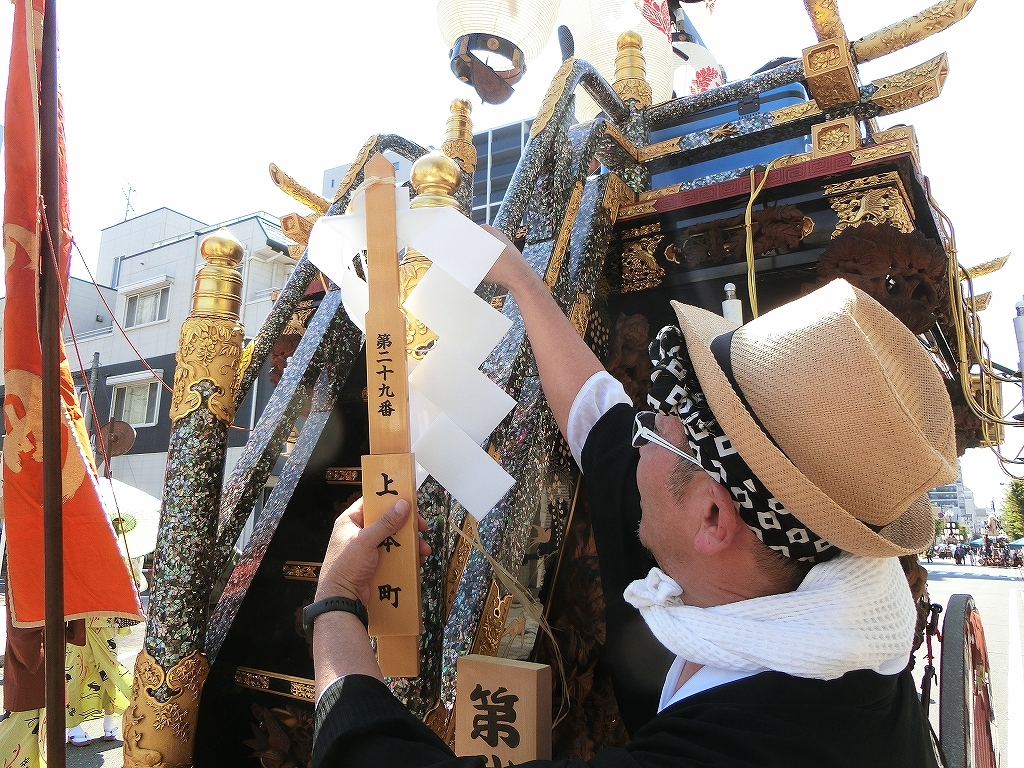 先に送り込みに出た第二組片町祭車は、既に整列位置に到着していました。