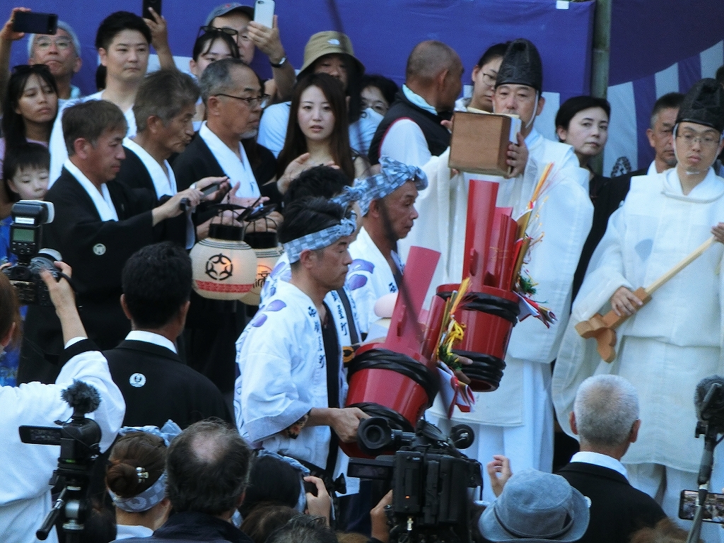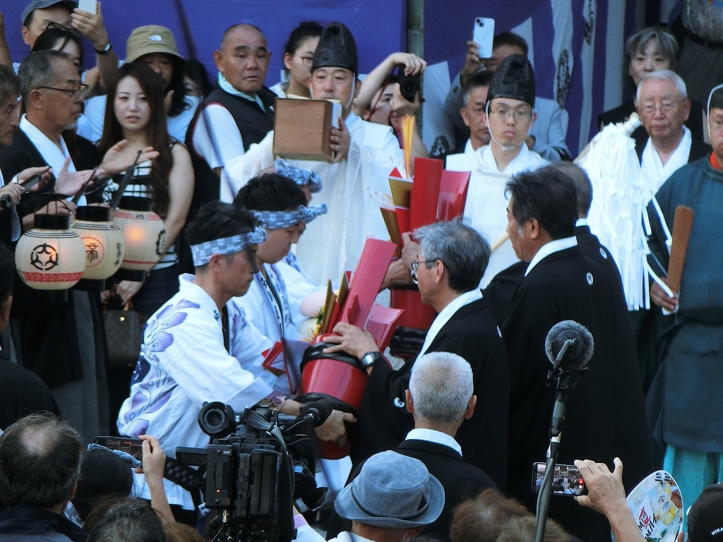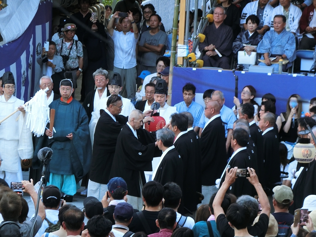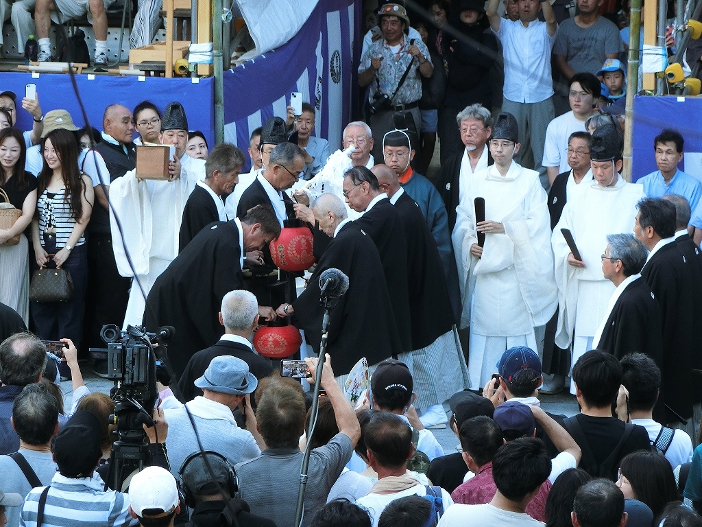 これで渡祭始式は終わり、保存会役員は桟敷席や祭車運行指示などの職に向かいます。