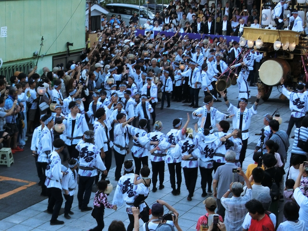 8/3 午後4時半、各祭車が道路中央に進む祭車一斉曳き出しです!