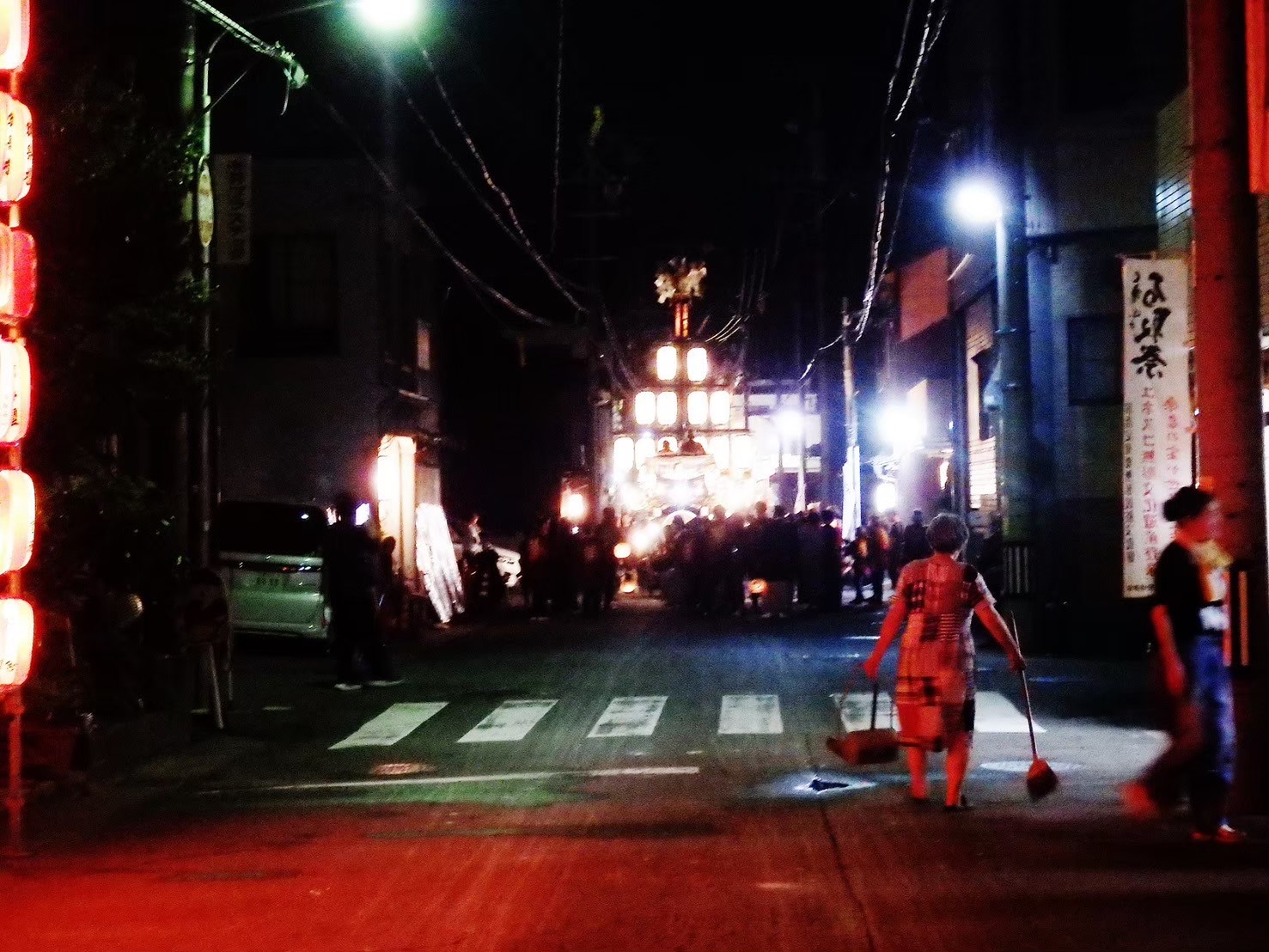 祭車の通過が遅い道では、掃除開始も遅くなる事でしょう。
