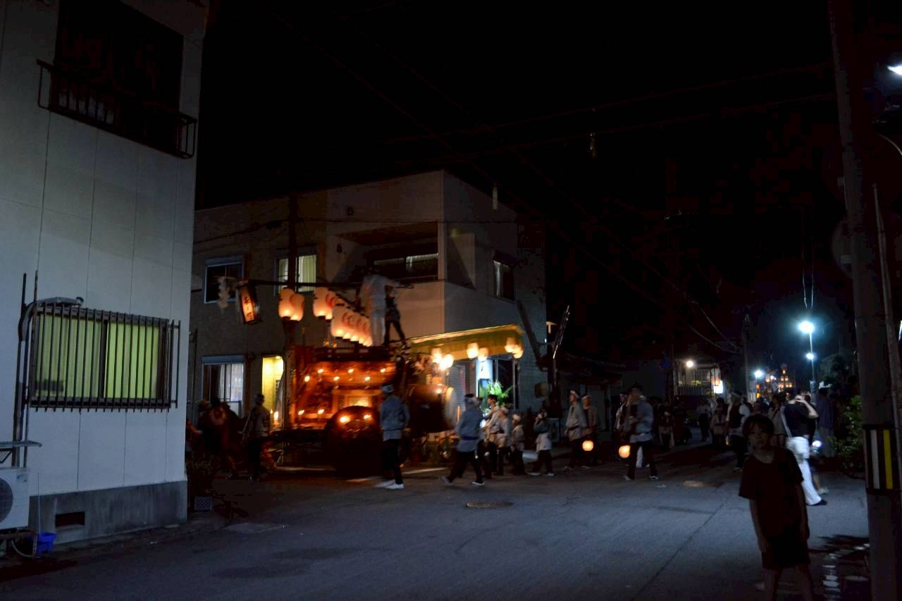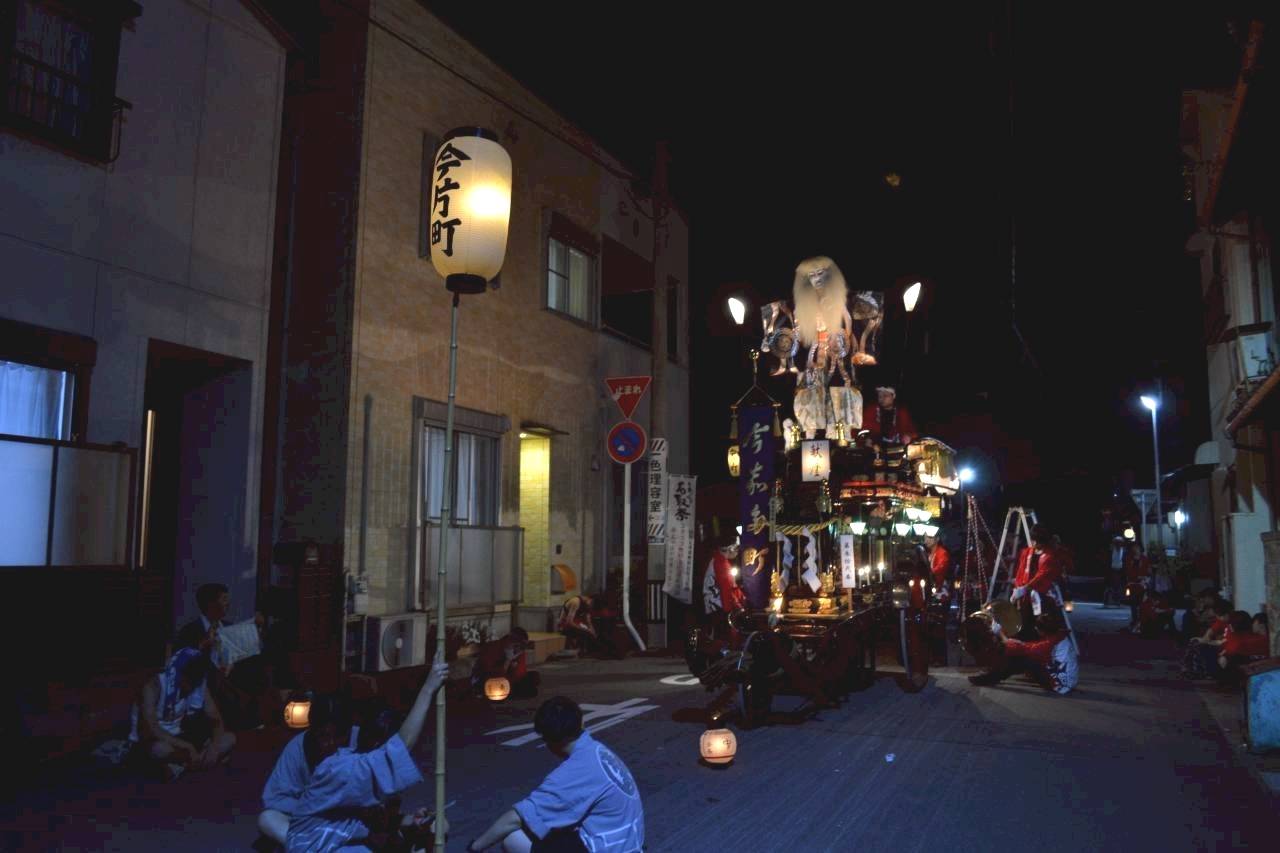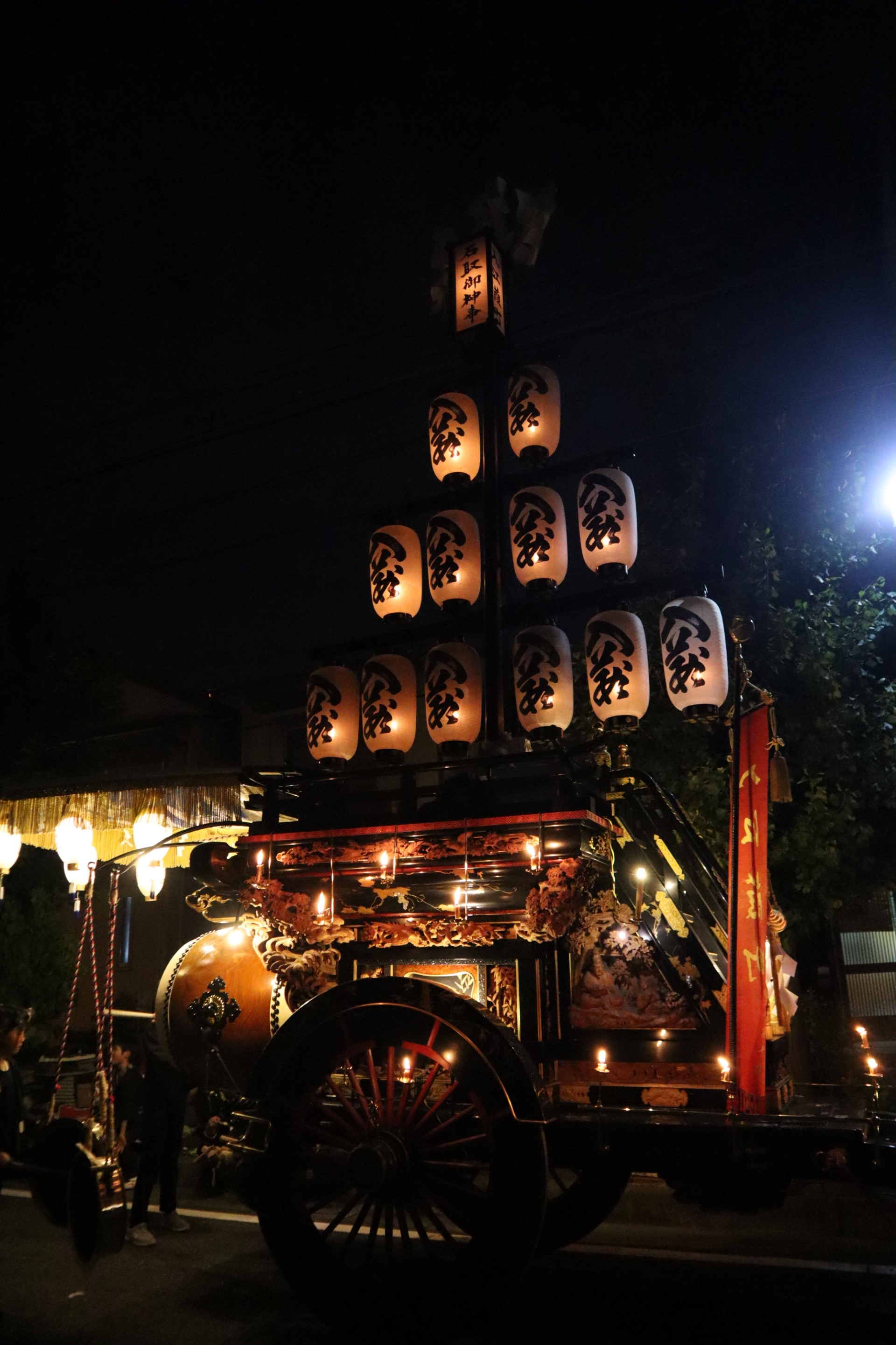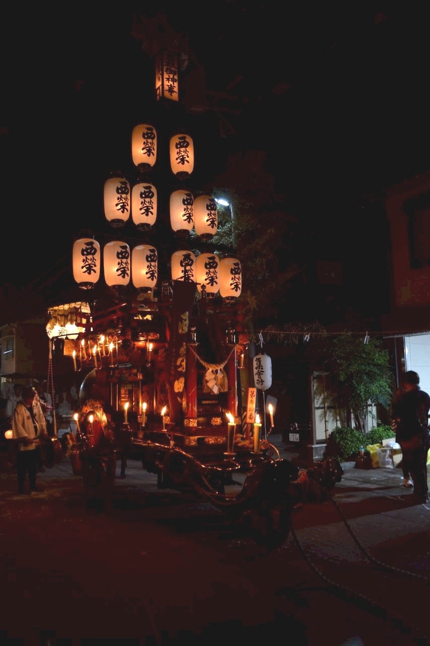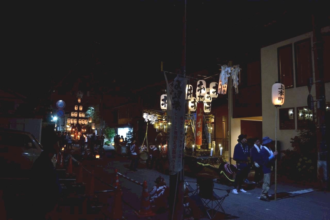 本町通りでは祭車全体の蝋燭が消えていましたが、宮北集会所前では全て点け直されていました。
