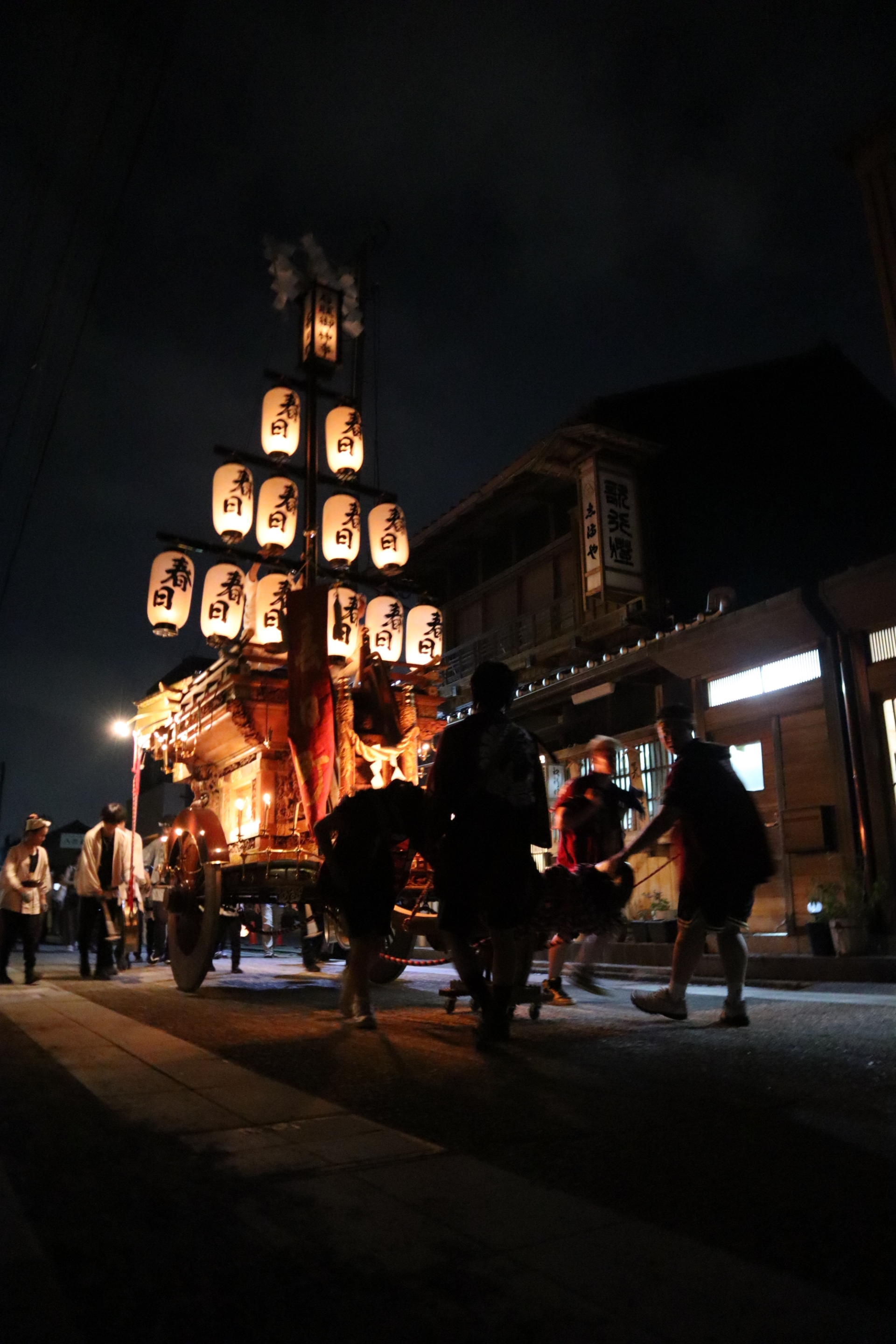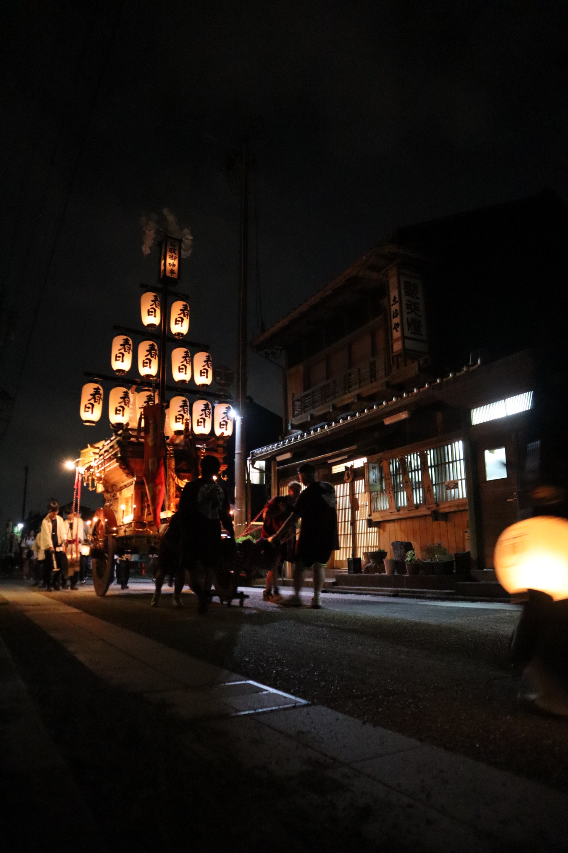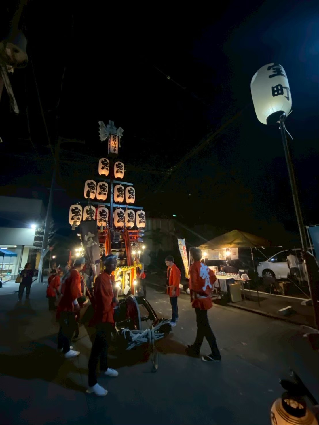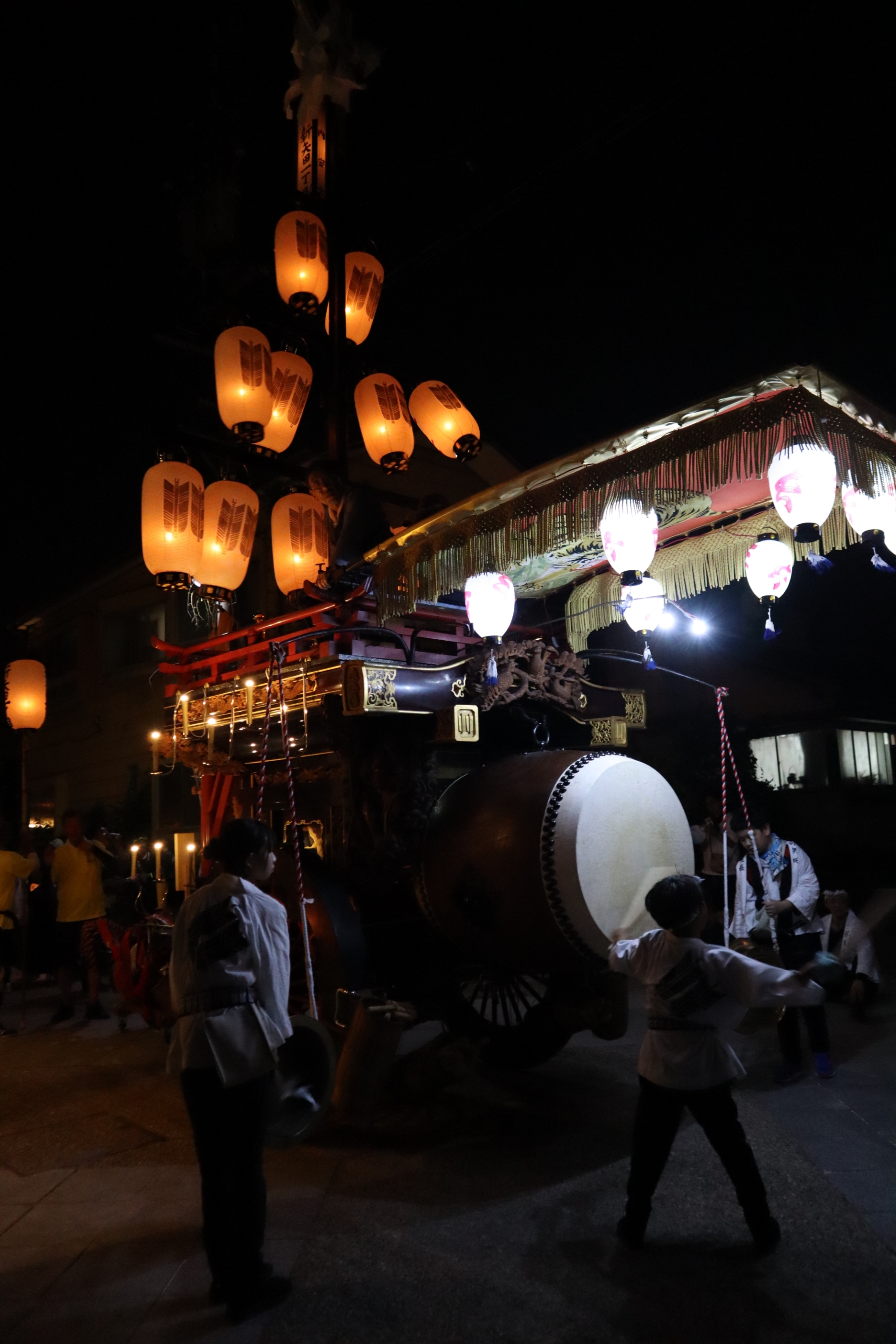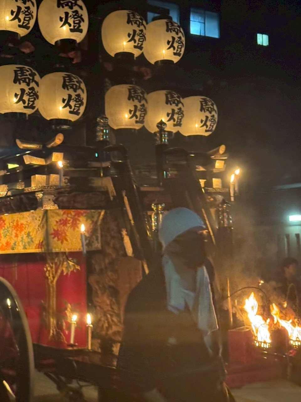 本町通りでは祭車全体の蝋燭が消えていましたが、宮北集会所前では全て点け直されていました。
