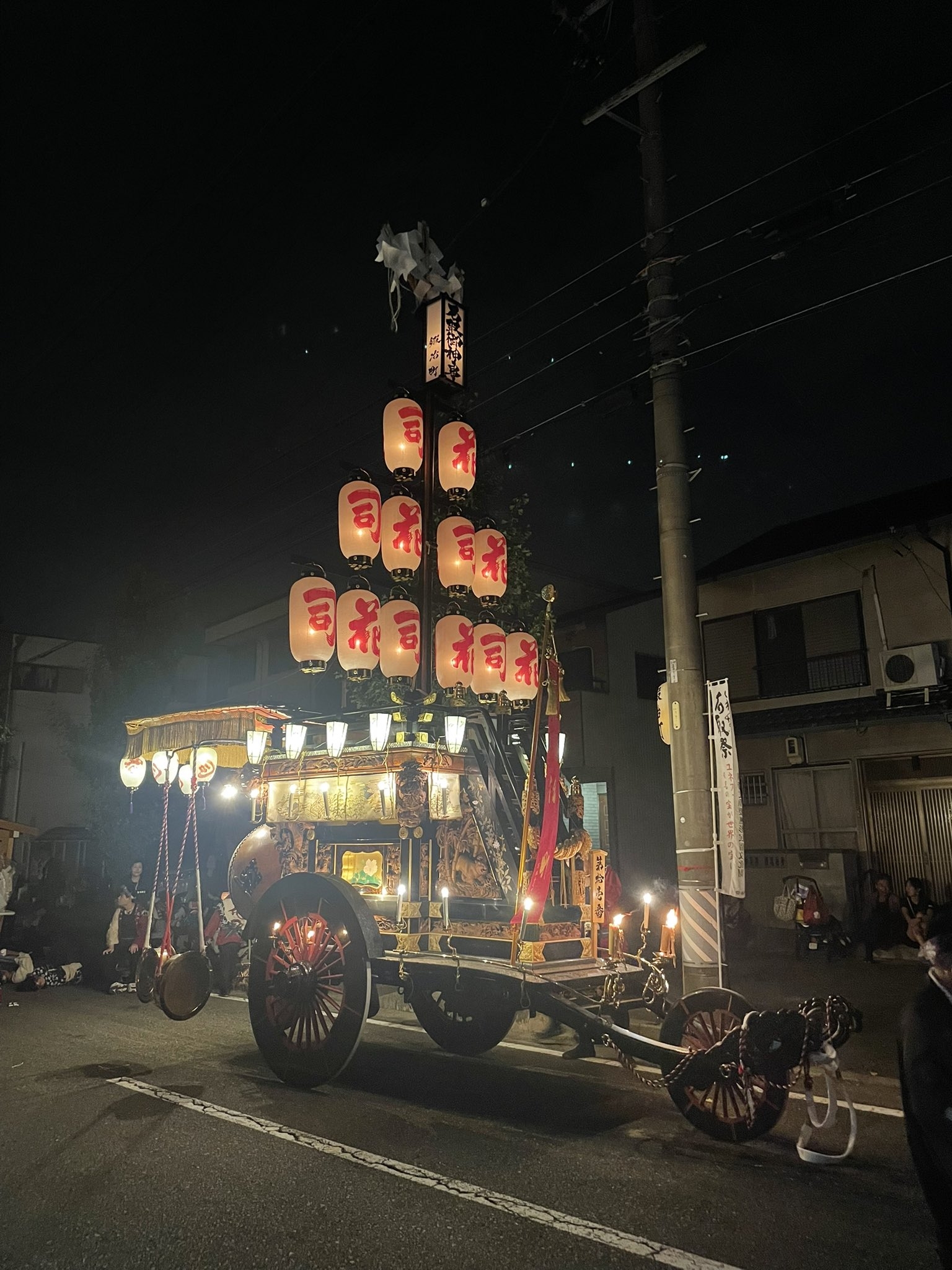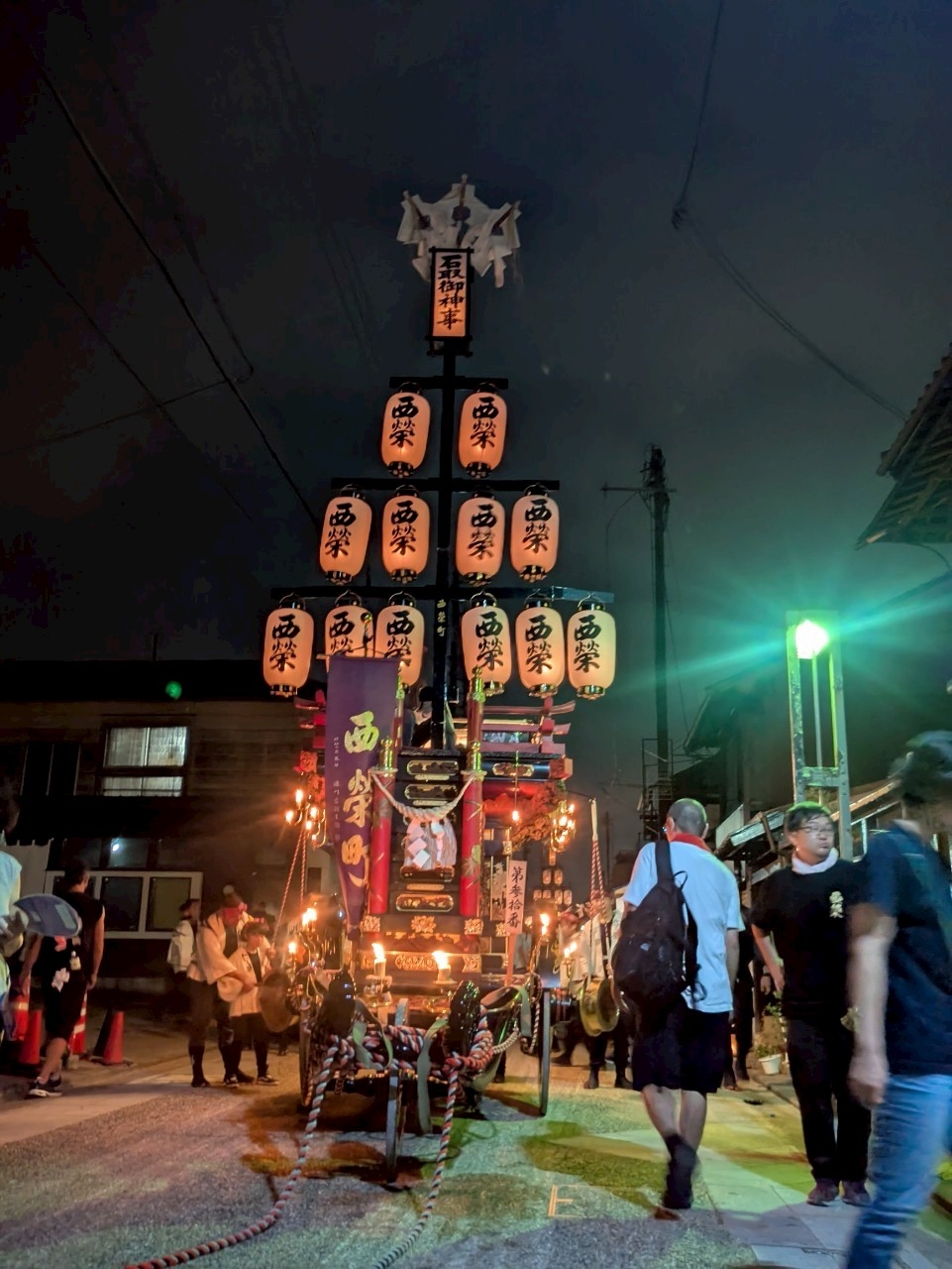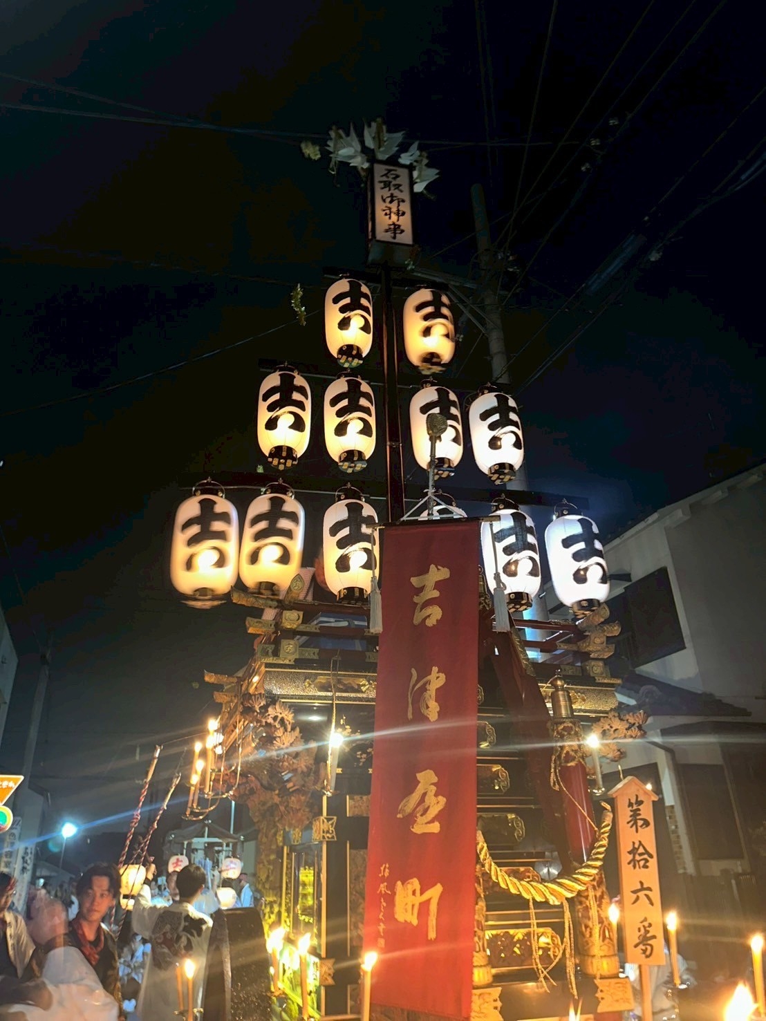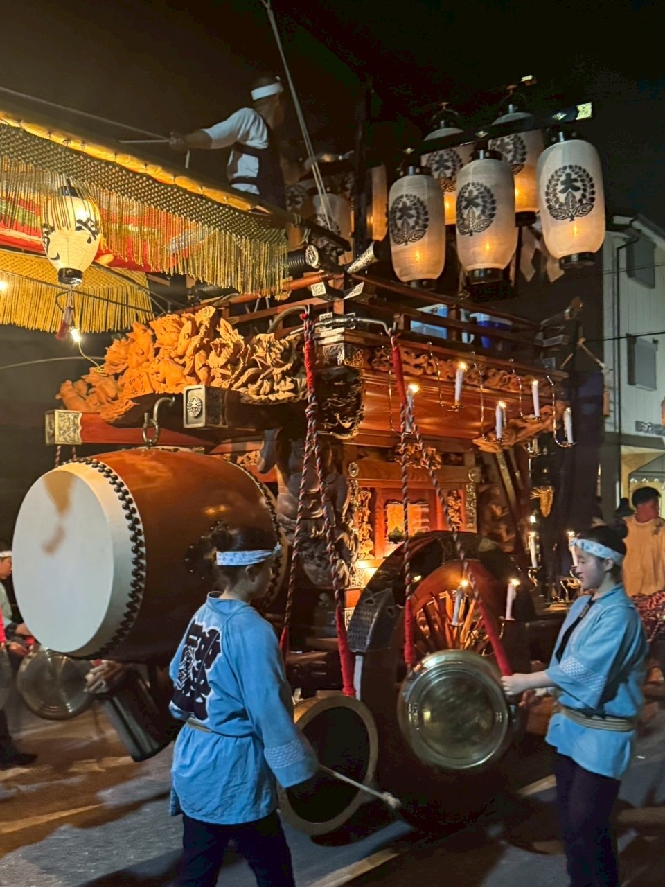 本町通りでは祭車全体の蝋燭が消えていましたが、宮北集会所前では全て点け直されていました。