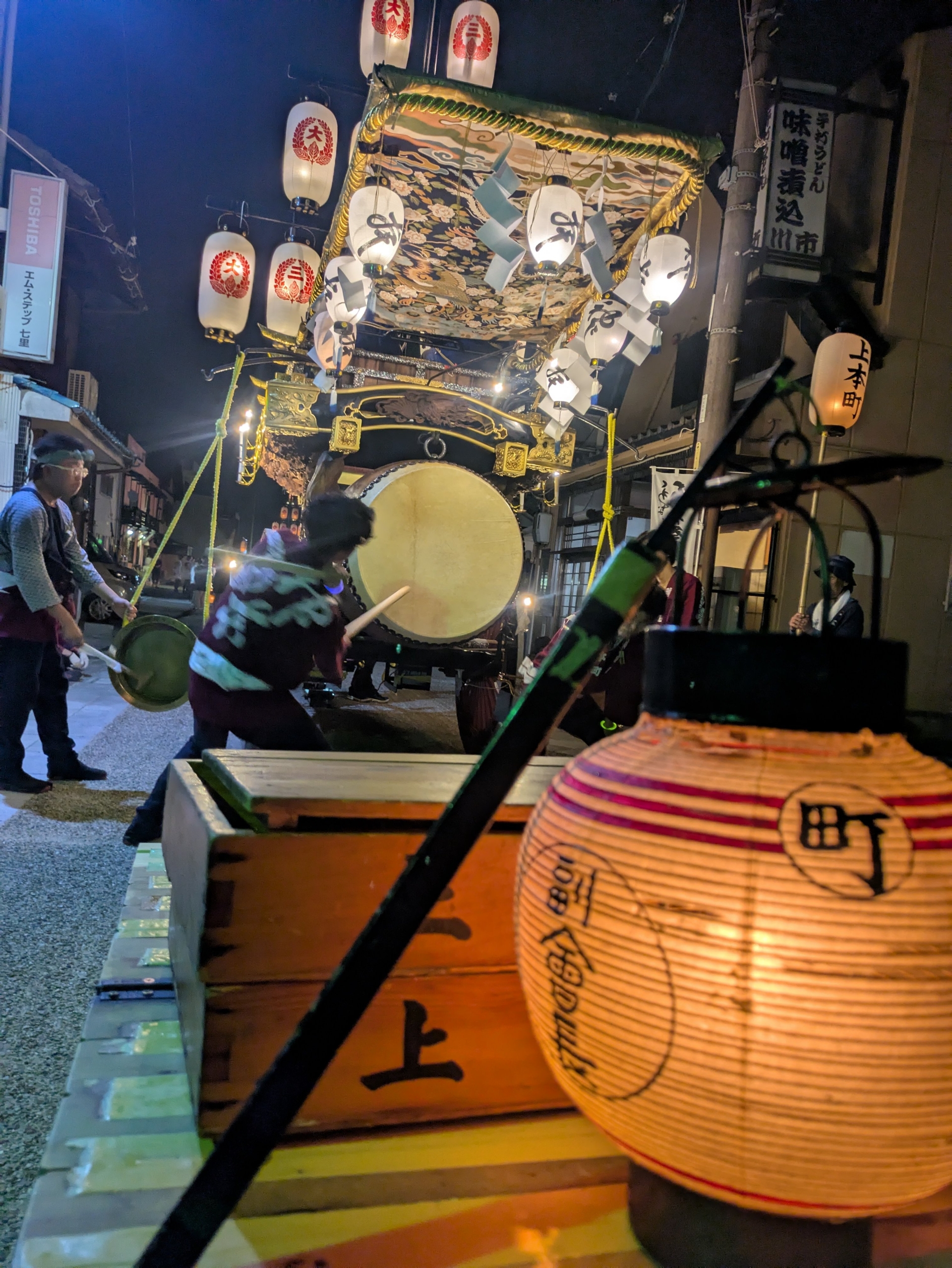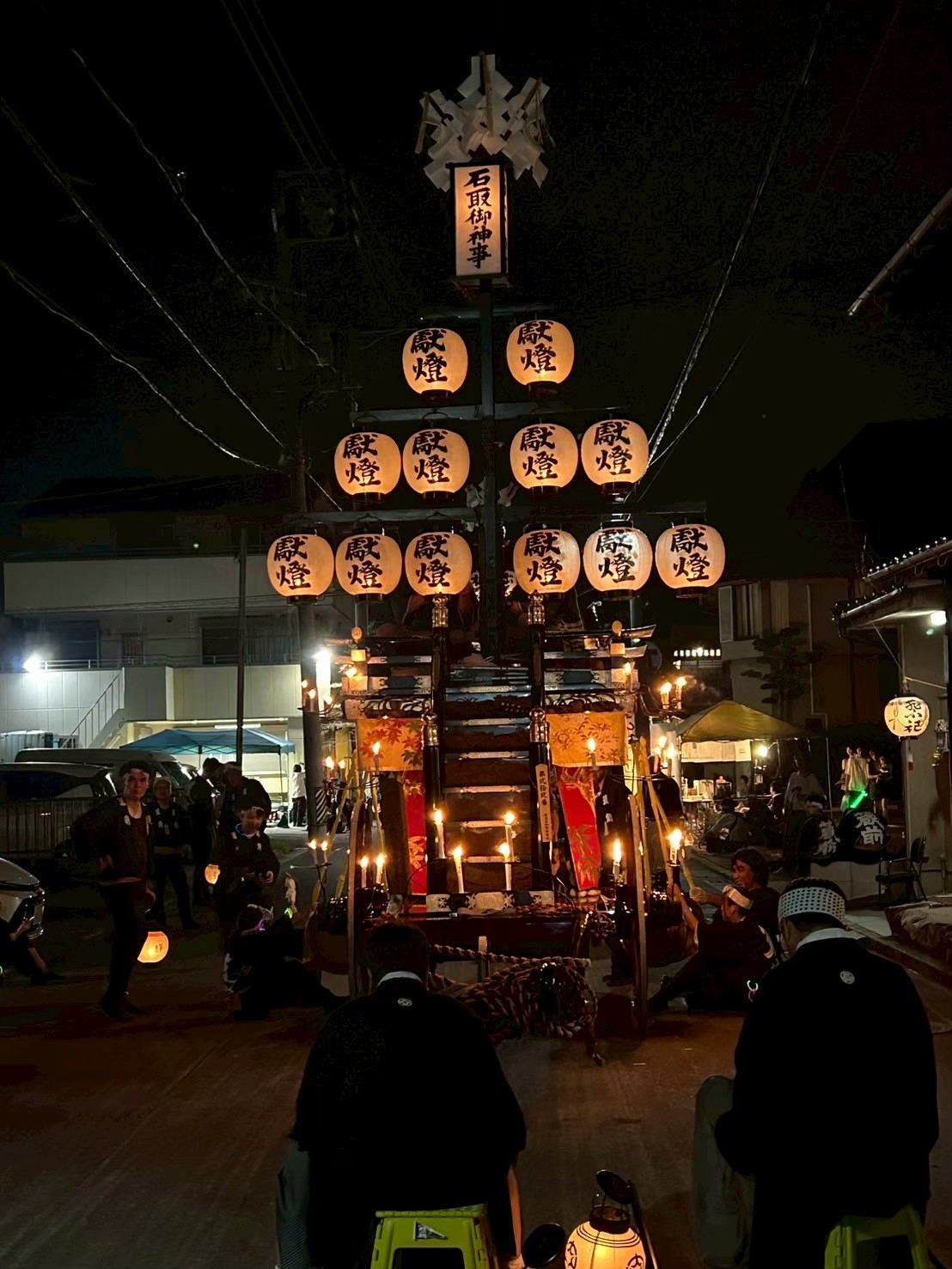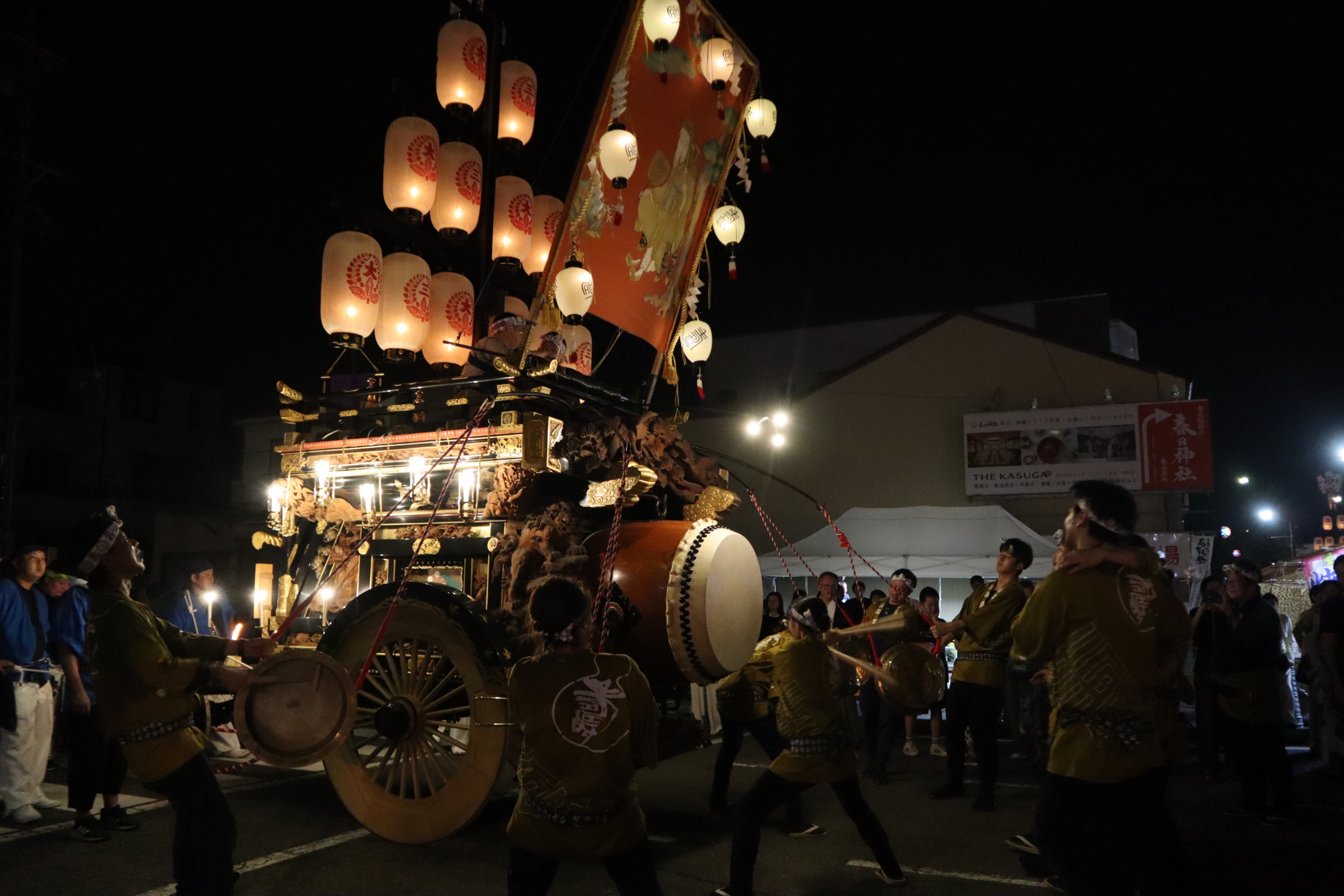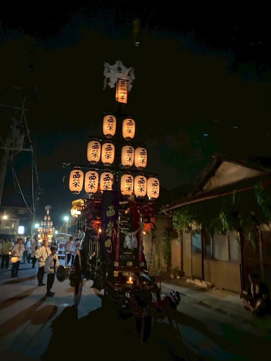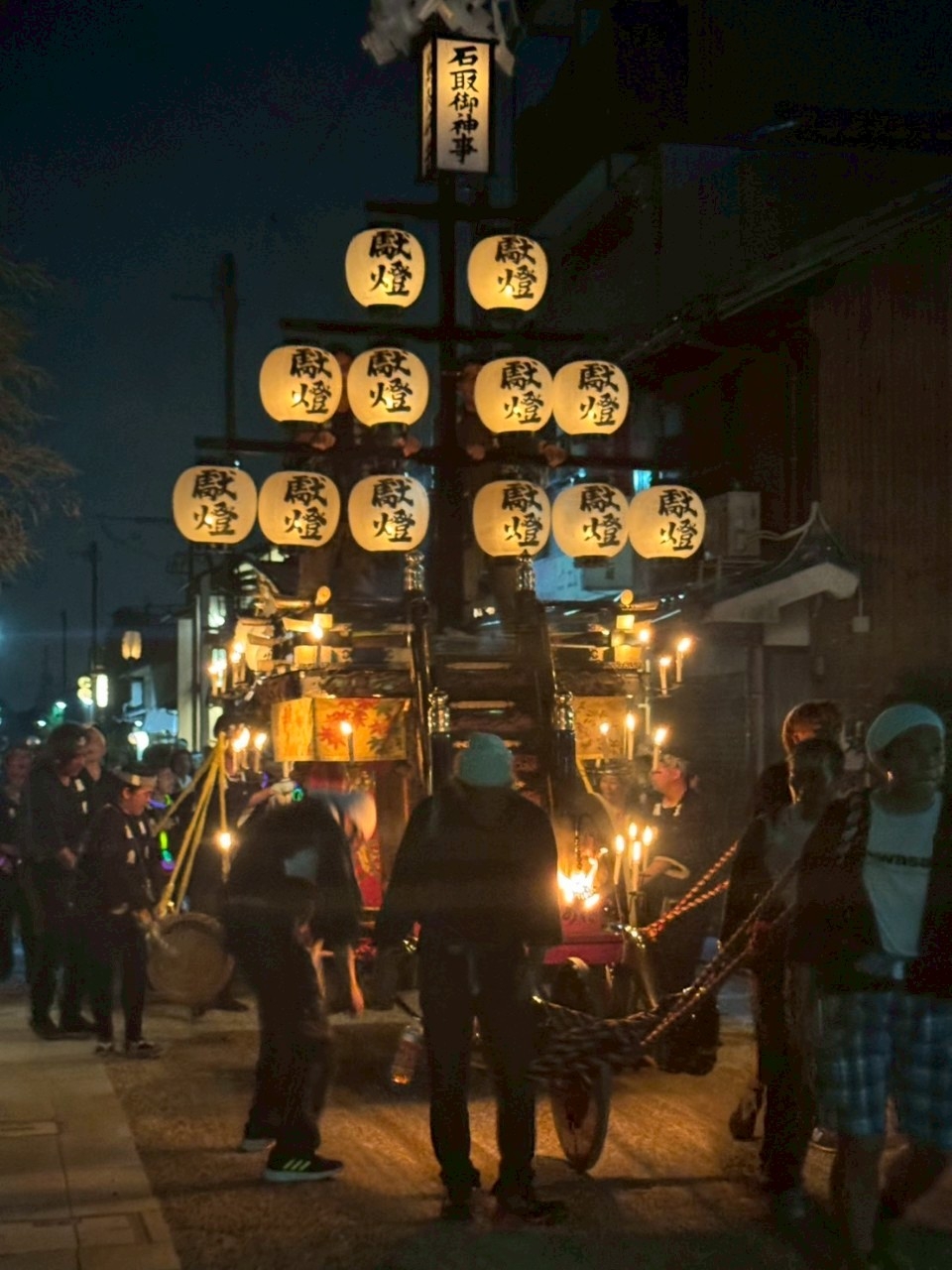 本町通りでは祭車全体の蝋燭が消えていましたが、宮北集会所前では全て点け直されていました。