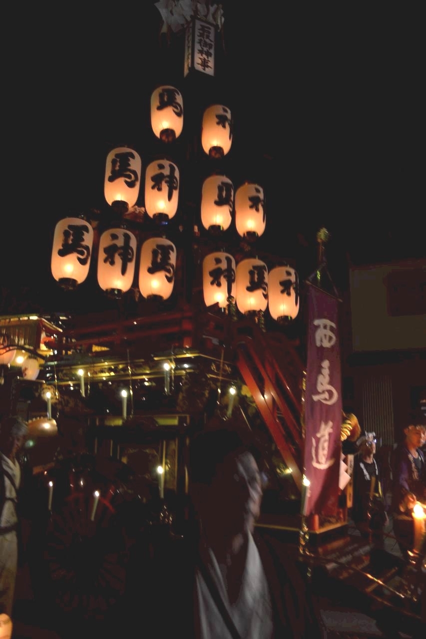 曳き別れを終えた西馬道祭車が、第八組祭車を追い抜きます。