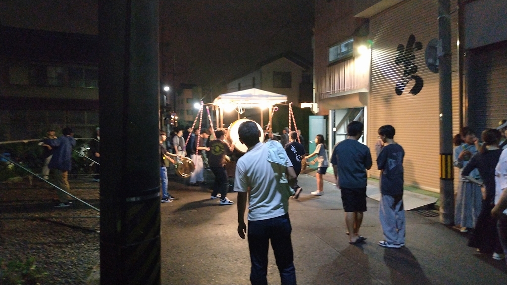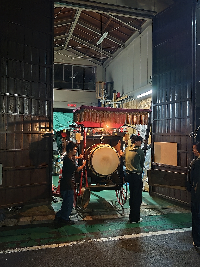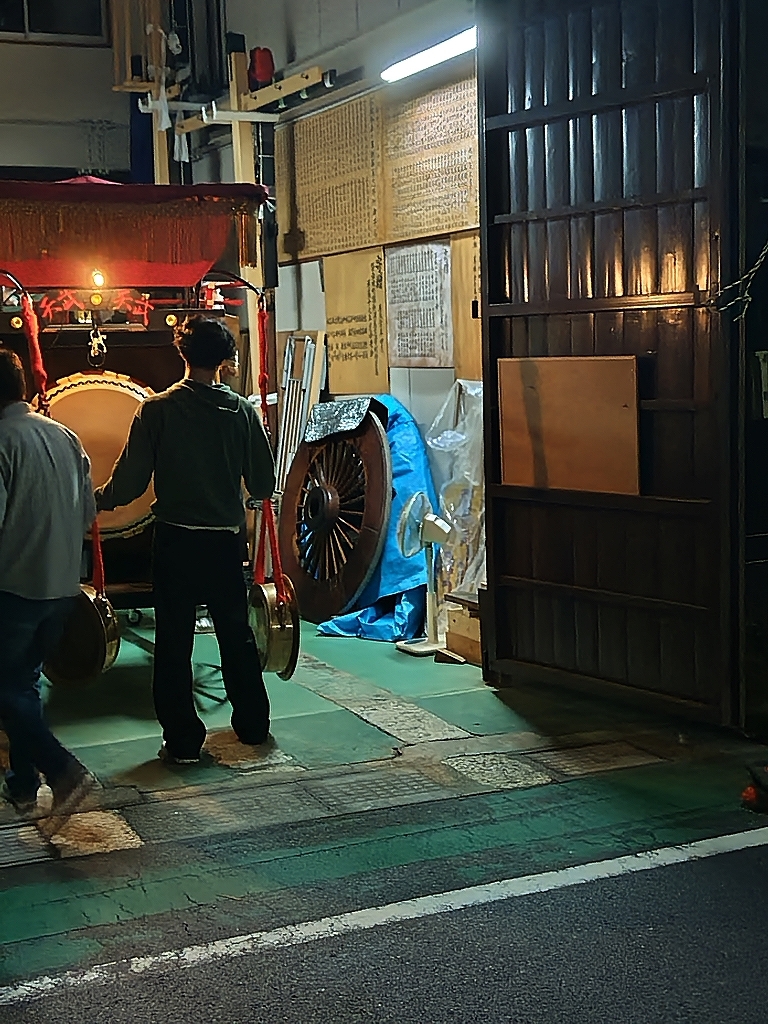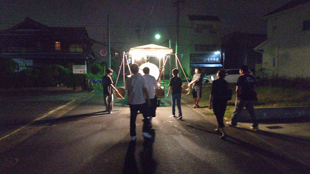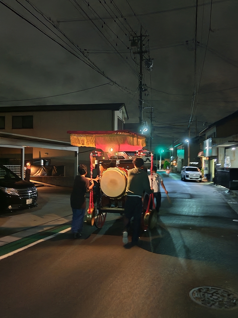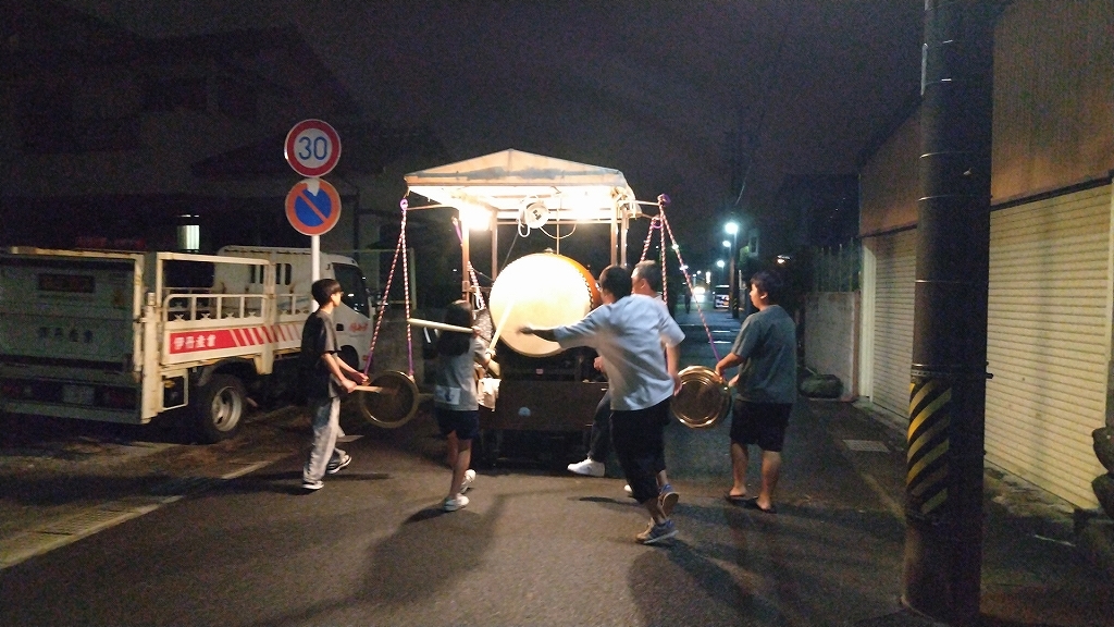 午後9時半、祭車蔵に向けて戻って行きます。