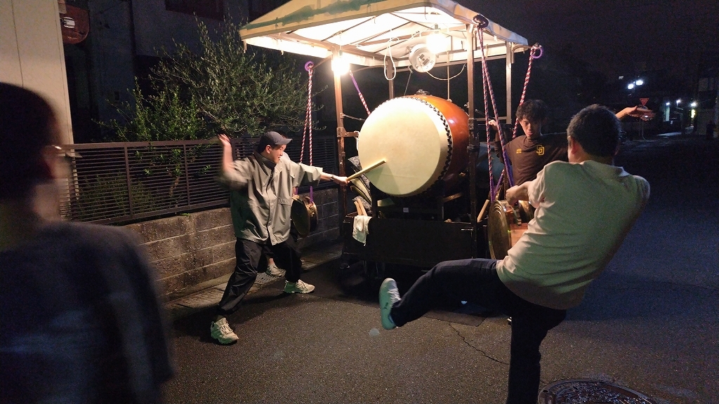 生憎、両日とも時おり雨天となりましたが、屋根のあるところで囃子が行われました。