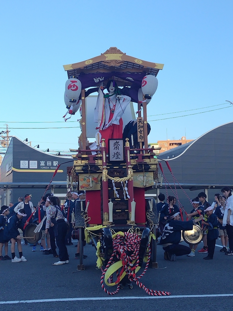 近鉄富田駅西口ロータリーに曳き込みます。