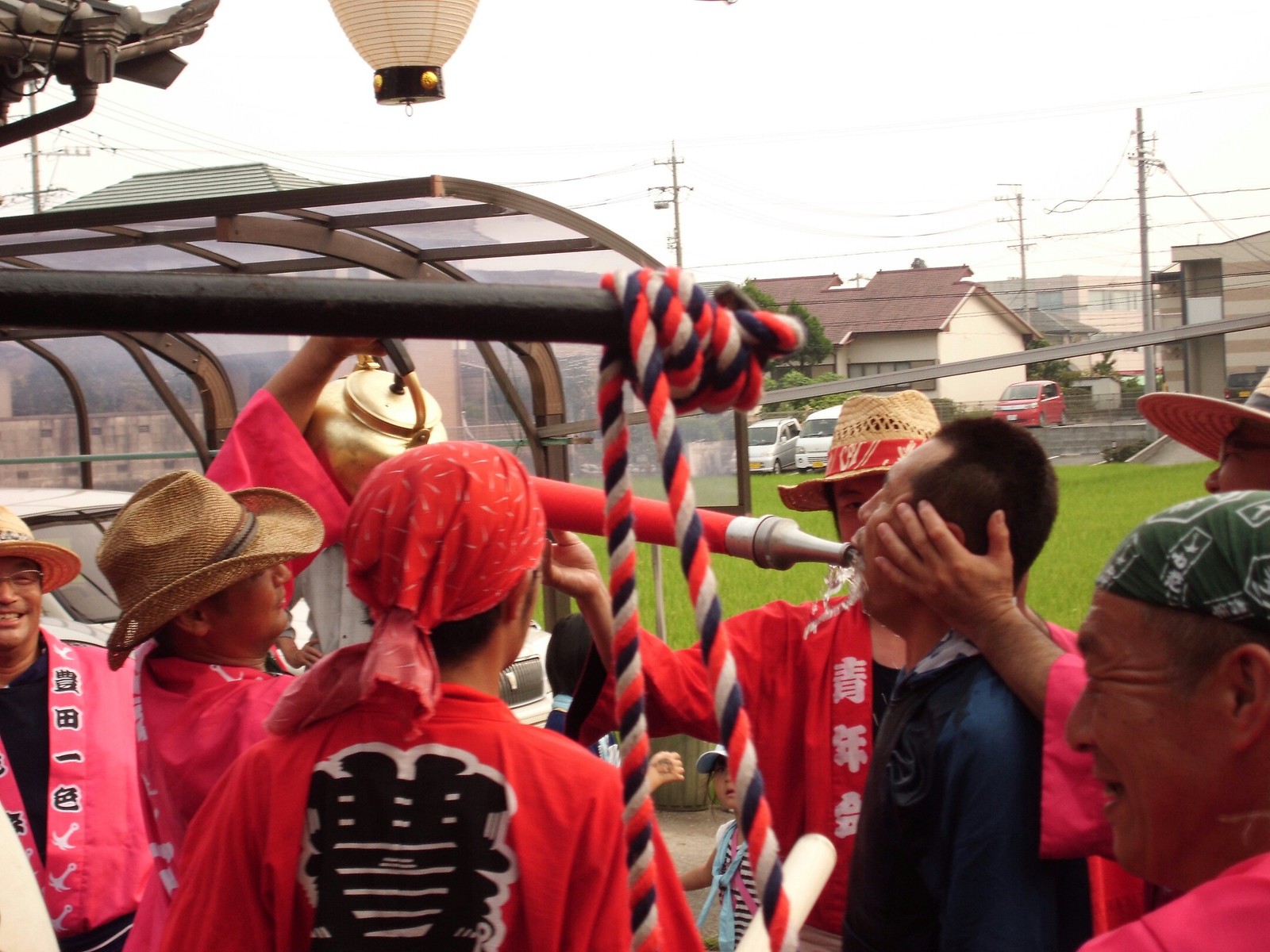 祭りは勢い良く、消火栓の先口でイッキ飲みとか