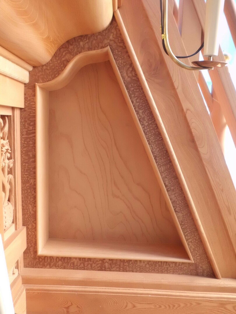 三角も板を当てただけでしたが、彫刻が入るように奥行きが取られました!
