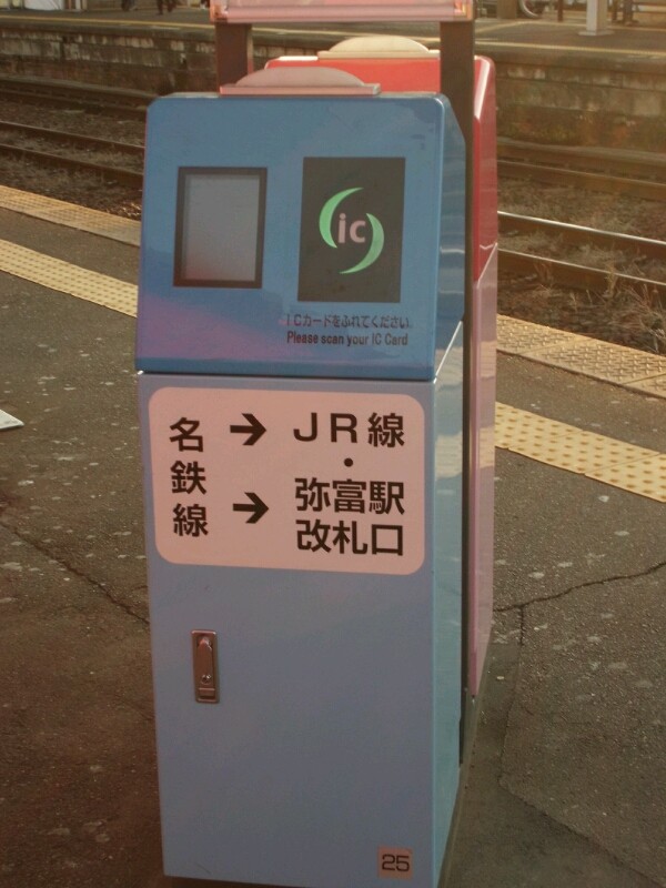 反対方向のホームの簡易改札機にタッチして再度名鉄(JR名古屋方面)のホームへ戻らなくてはなりませんでした!
