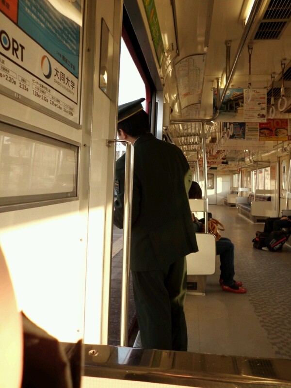 車内巡回途中で、駅に到着したので中間車両で扉の開閉。