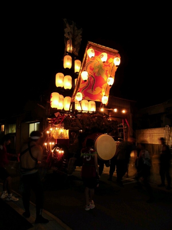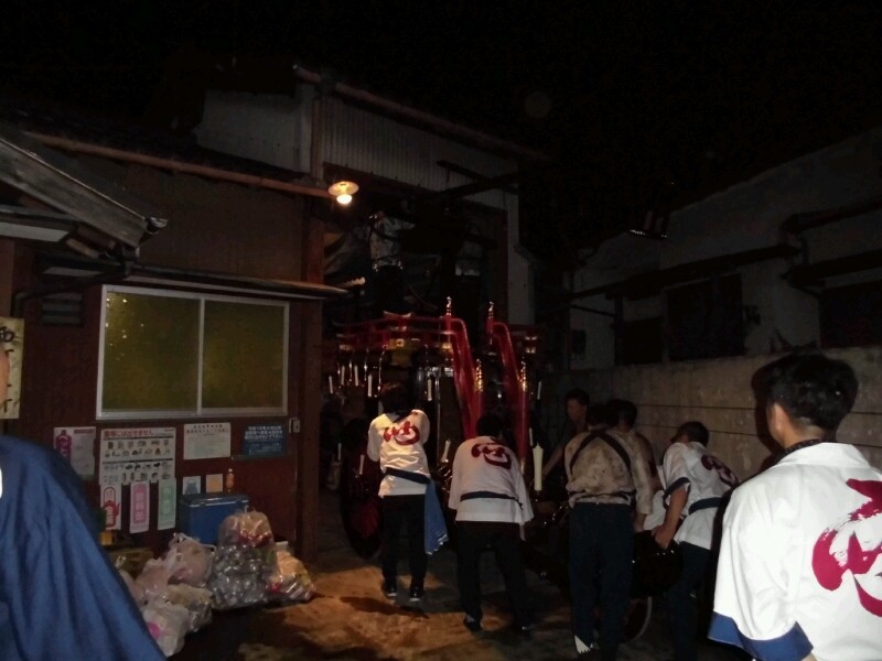 少し遅く着いたので、青年会宿前より祭車庫へ移動中