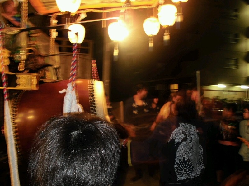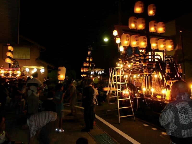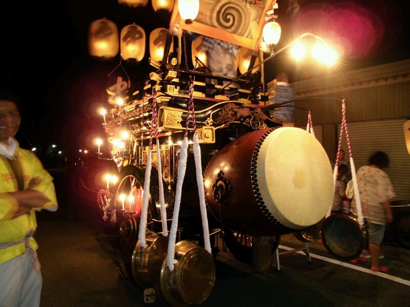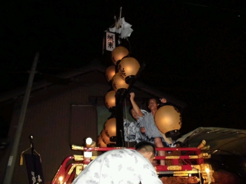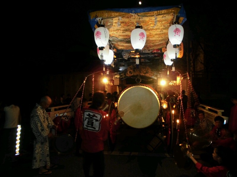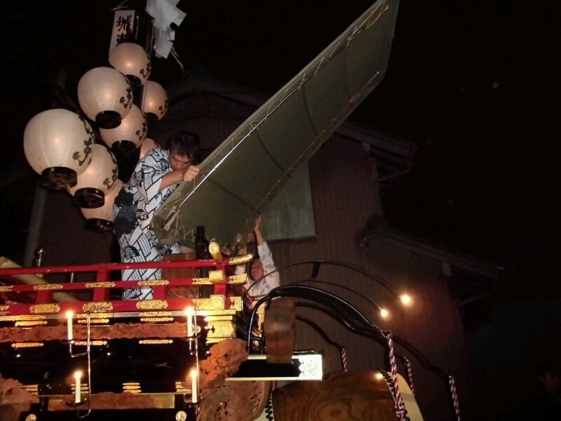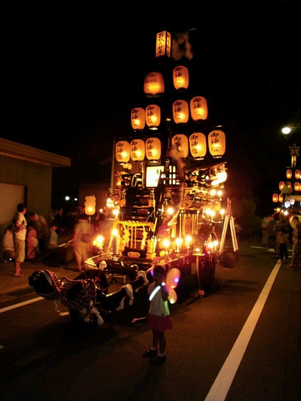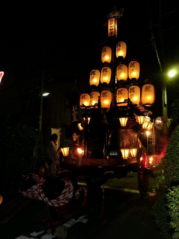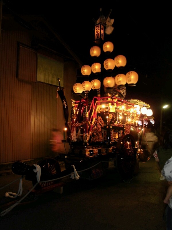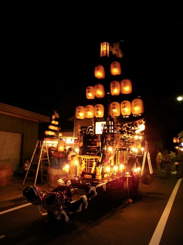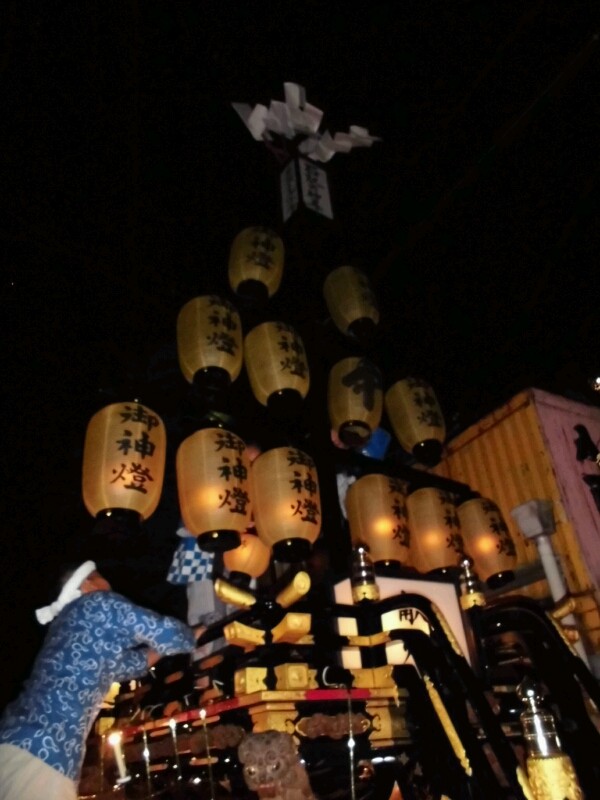 各町祭車は提燈に灯を入れています。