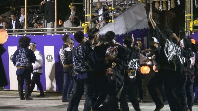 我が町は青年会も中老会も浴衣で座敷に上がり、叩き出し前に半纏姿へと着替えます!
