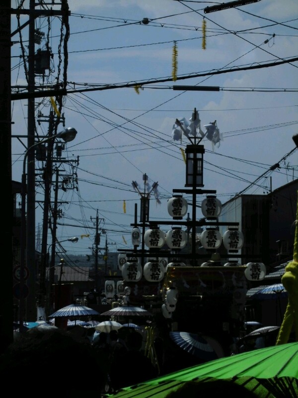 他の町でも、下段左右に一張づつ吊るすのみの祭車や、山形と万燈・御幣は付けたままでも、下六張しか提燈を付けないところなどもあります。