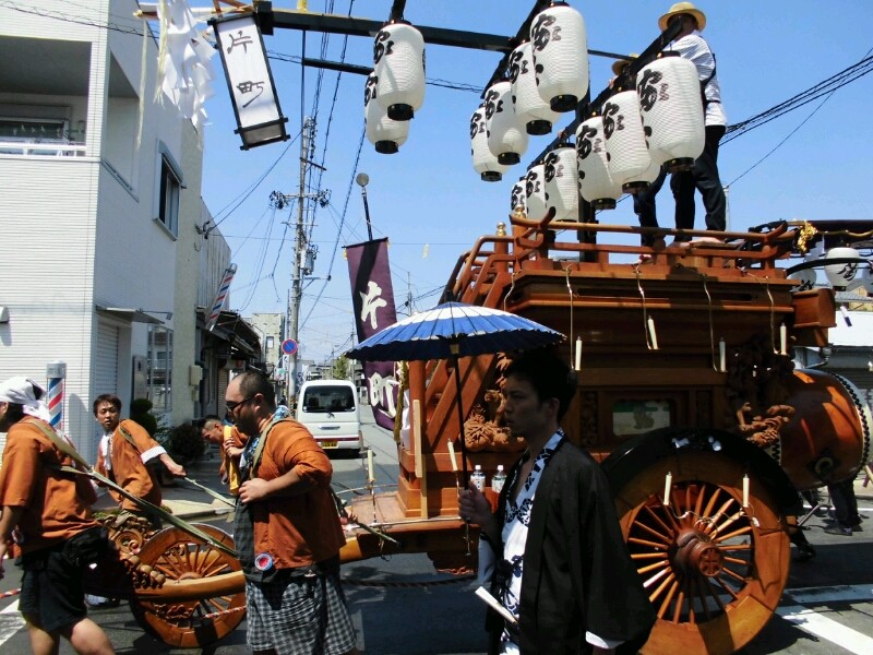 昔は2巡した上、住吉神社の坂も祭車を曳いて昇り、それでも祭車が止まると叩きに行ってた自分はどこへ行ったのやら?