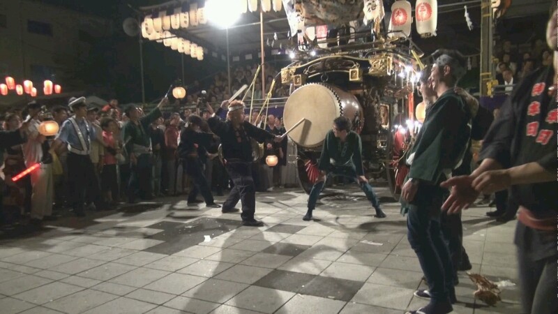 本楽の田町交差点で、他の町の青年会が入って来るのも異例ですが、他の祭車の青年会長が叩くなんてのも異例!