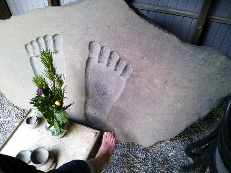 桑名市指定文化財の佛足石で足のサイズを比べて見たり
