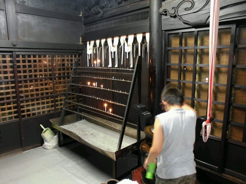 網のついた竿にお賽銭を入れると、蝋燭を奉納してくれます!