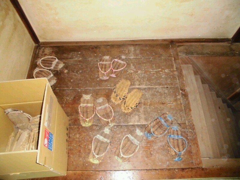 何年物?の藁草履を履いて、真っ暗な堂内を回る。