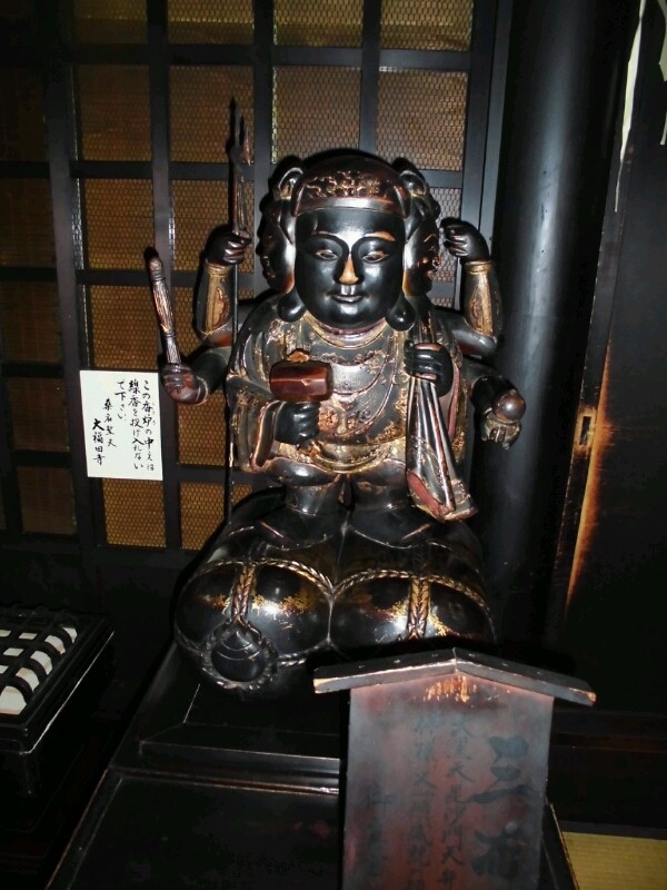 この大黒天は辨財天・毘沙門天が一緒になった珍しい、三面大黒天様です。