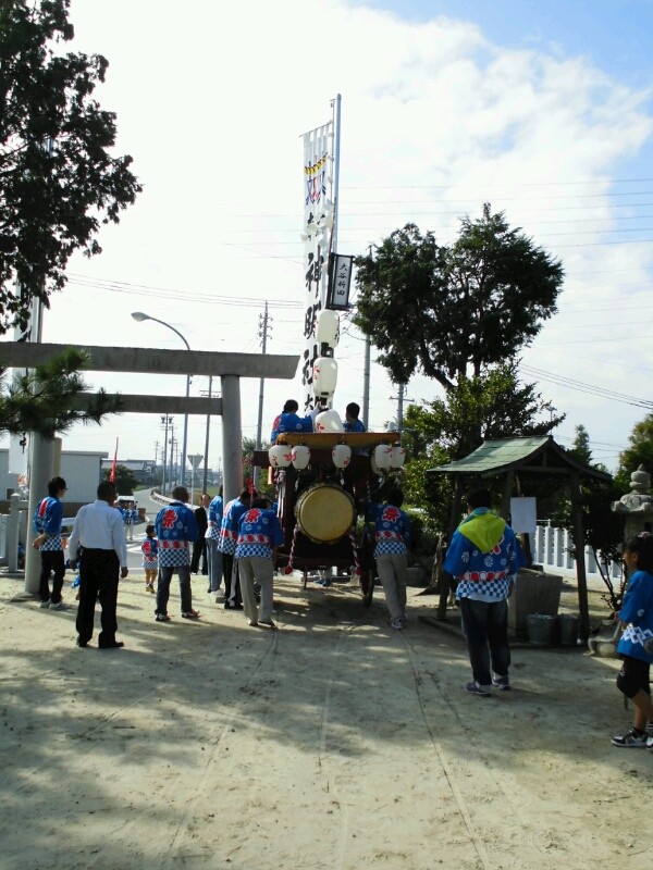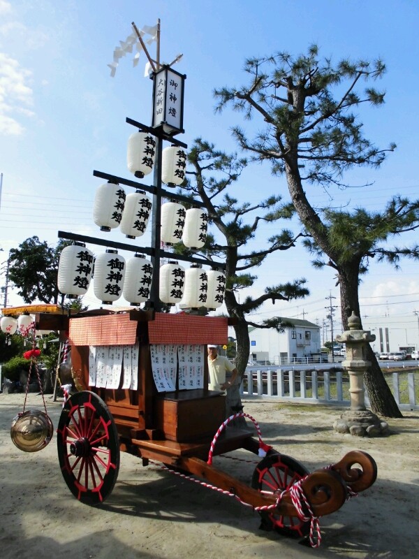 神明社境内に祭車は置いてありました。