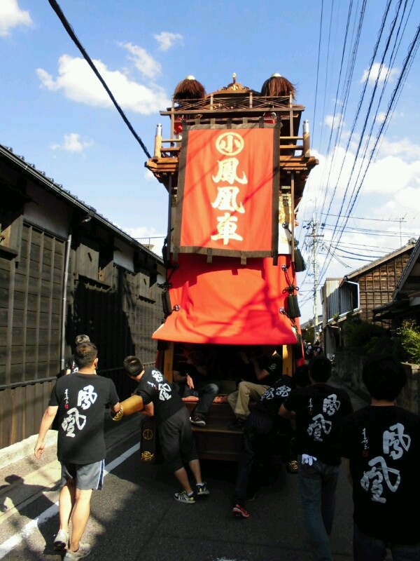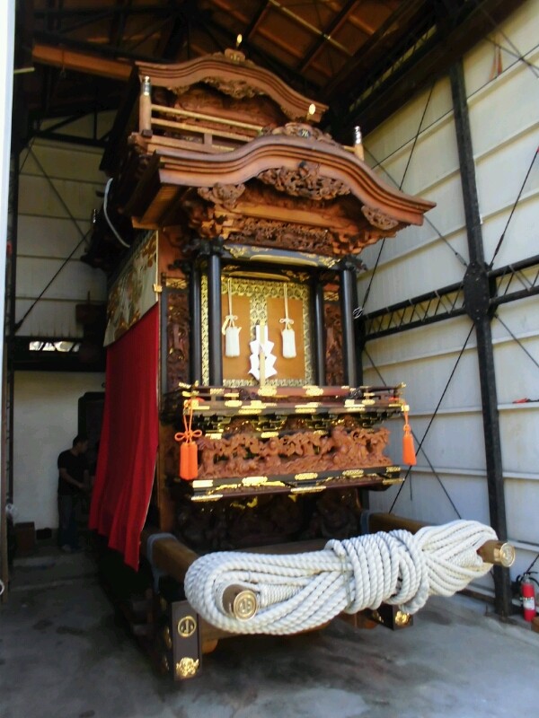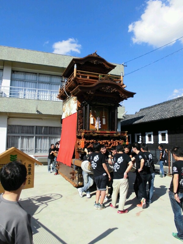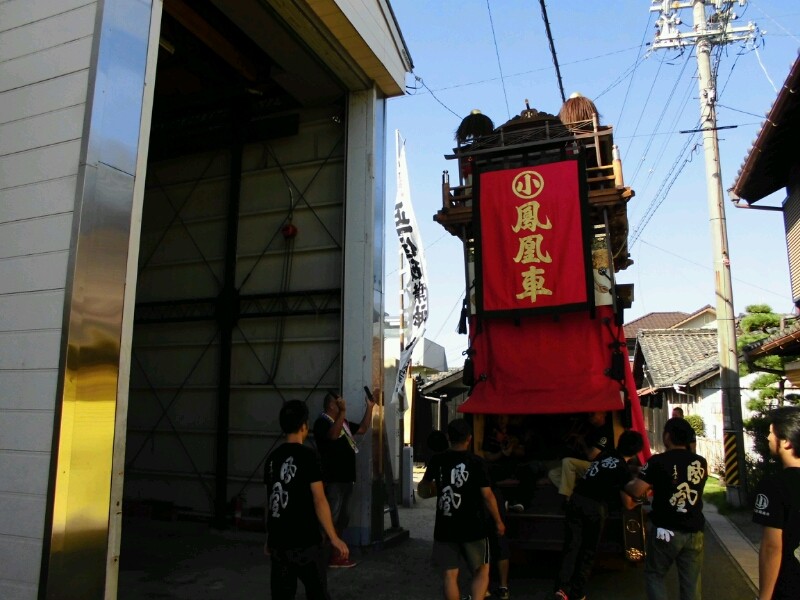 山車の展示は14時までとの事で、公民館からサヤへ戻すところでした。