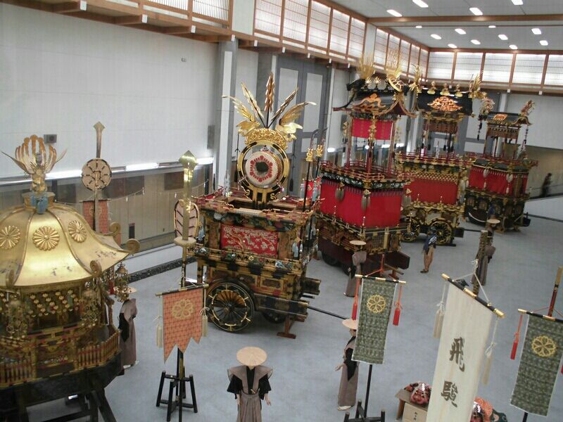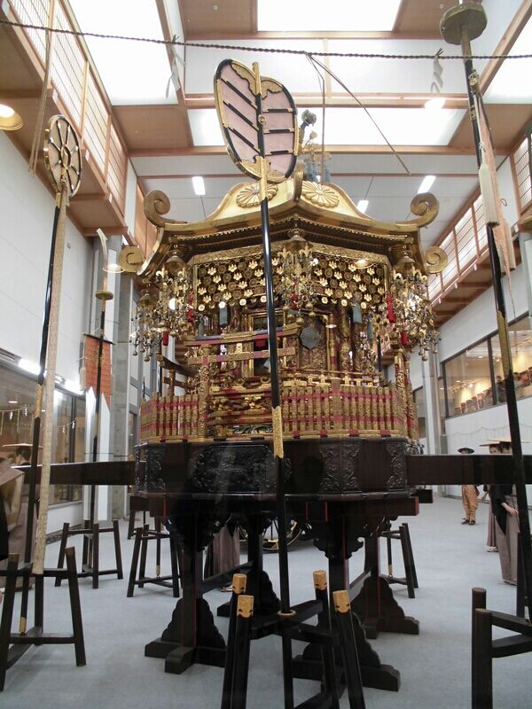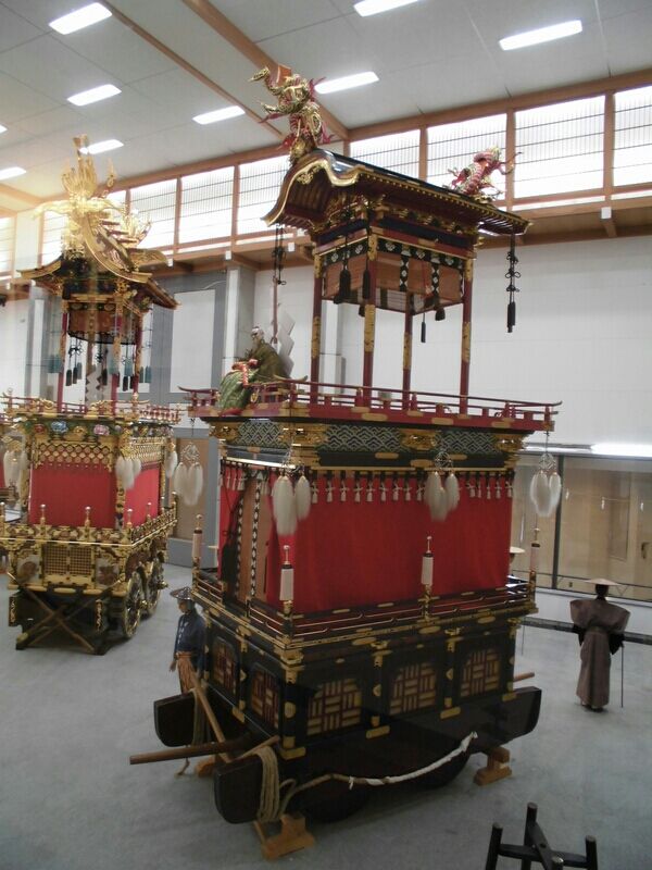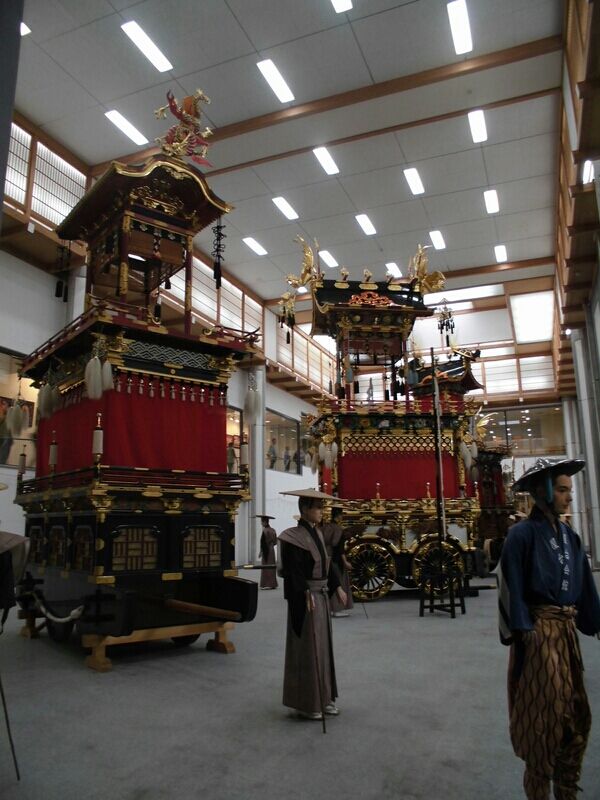 この屋台会館には秋の高山祭に曳き出される11台の屋台を年3回(3月・7月・11月)4台づつ入れ替えて展示しています。