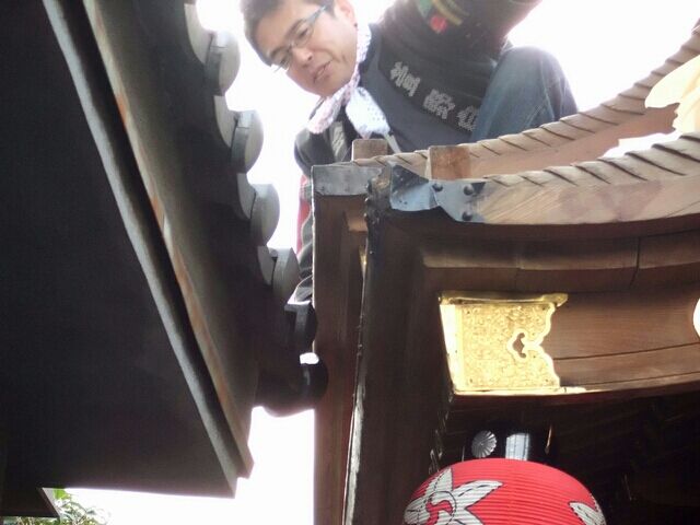 だんじりの下で行います!