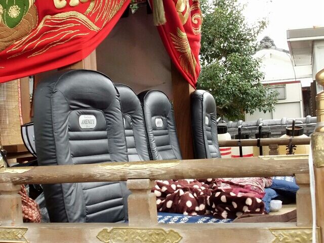 だんじりの上に革張りの席?