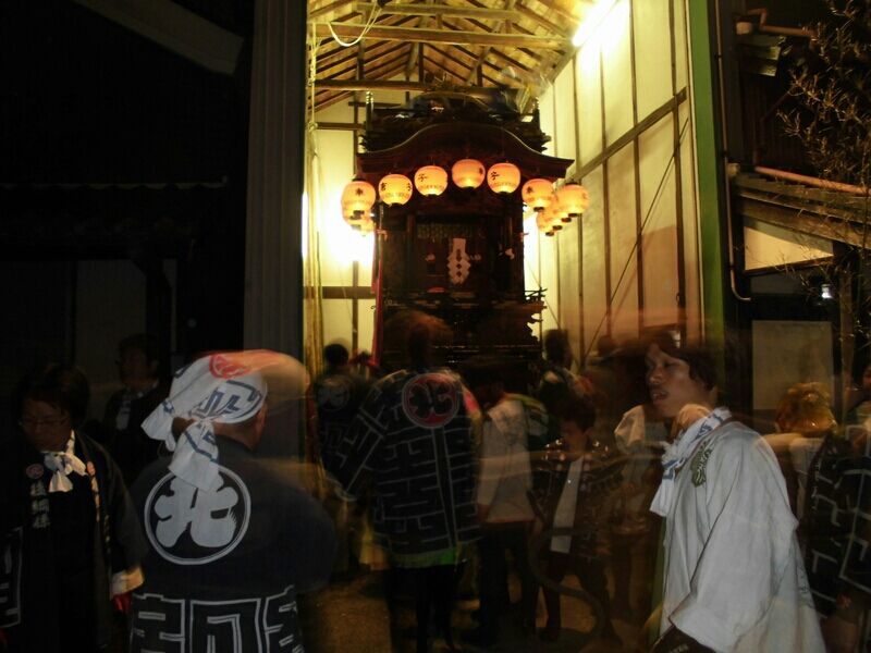 名残惜しむかのようにお囃子が続く中、我慢しきれなくなったK氏は、お囃子を奏でに御車の中へ。