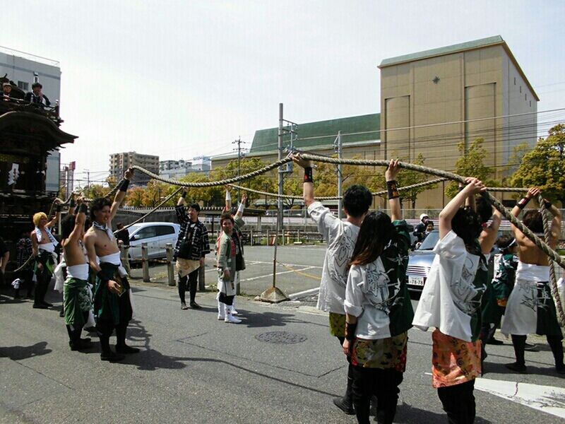 なんてところを見ていたら、北組の若衆が綱を上げて遊んでいる?