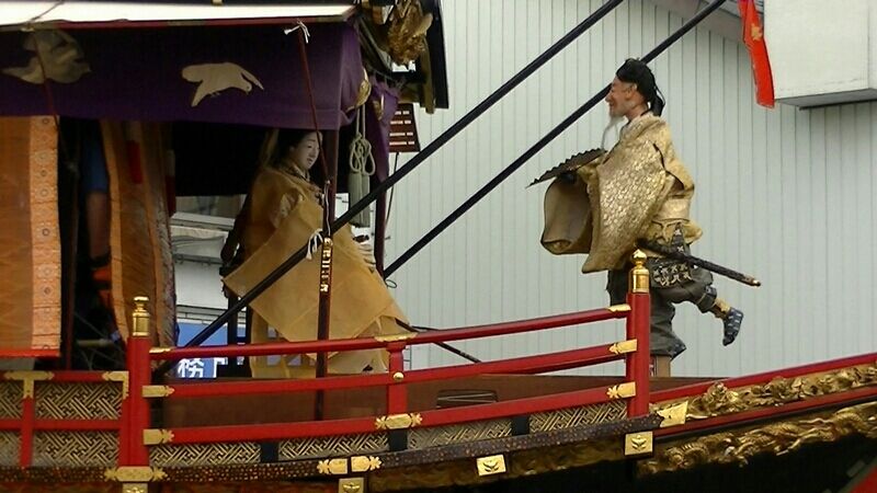 からくり人形は武内宿禰と神功皇后。