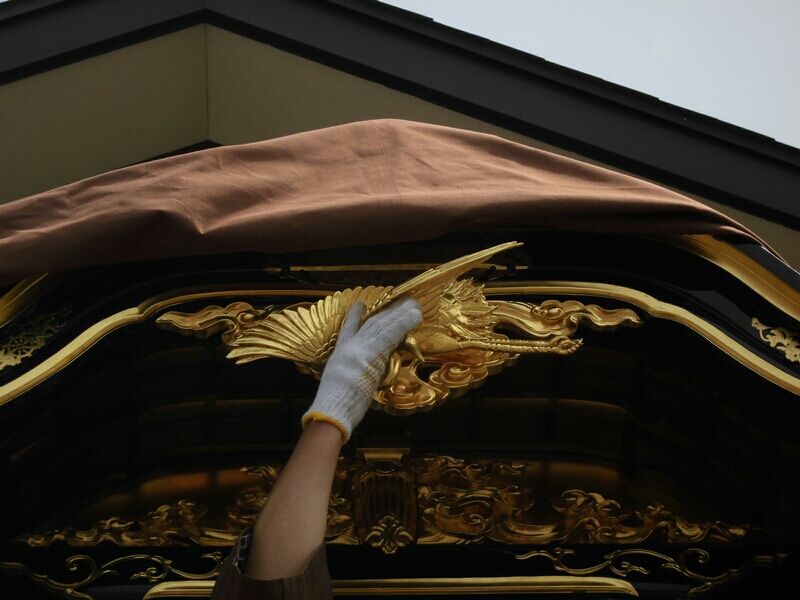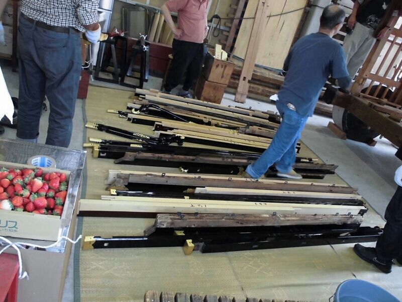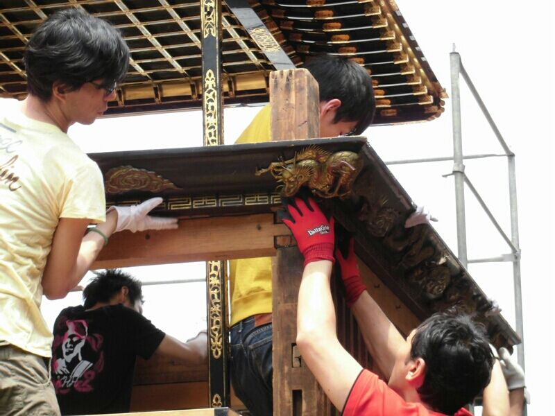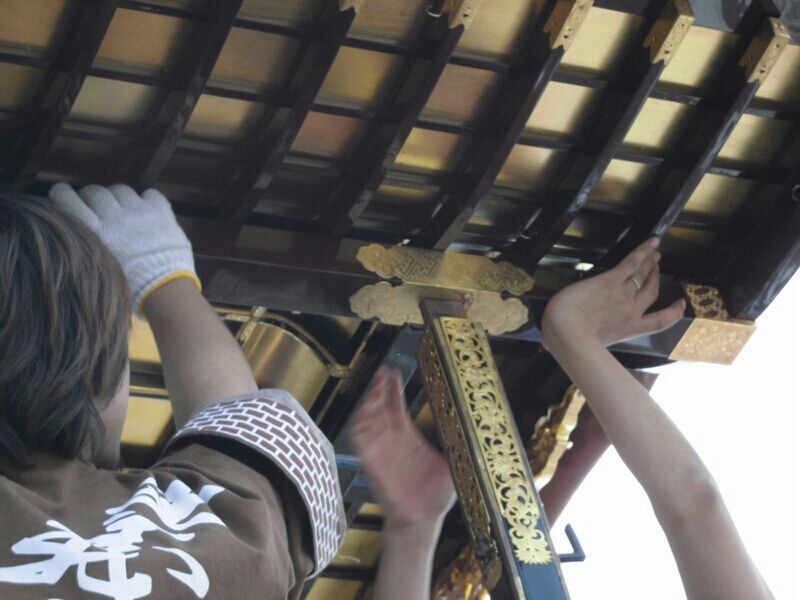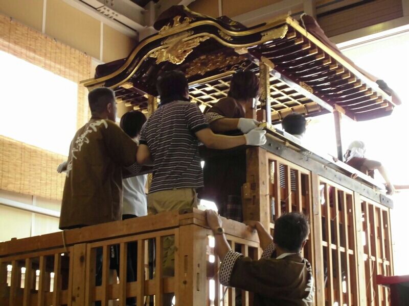 杁西町と問屋町は組み上げたまま置ける蔵がないので、毎年、一から組み上げます。