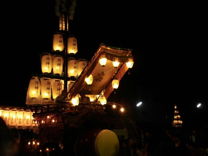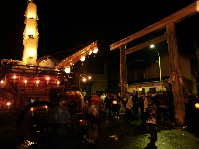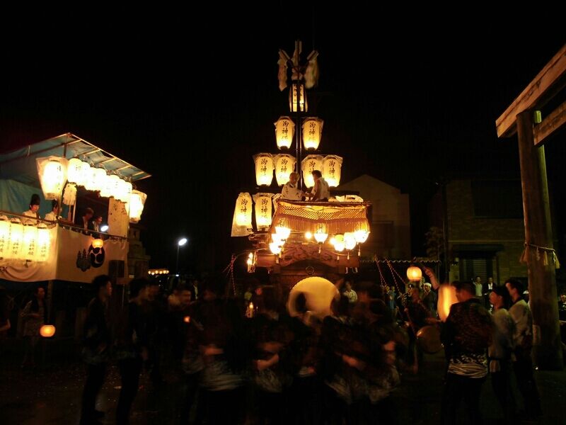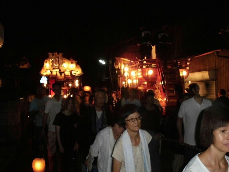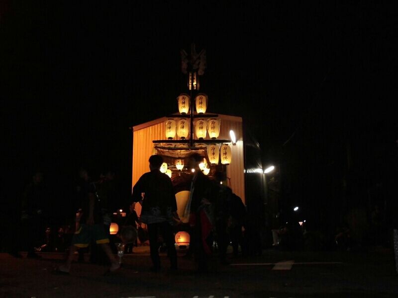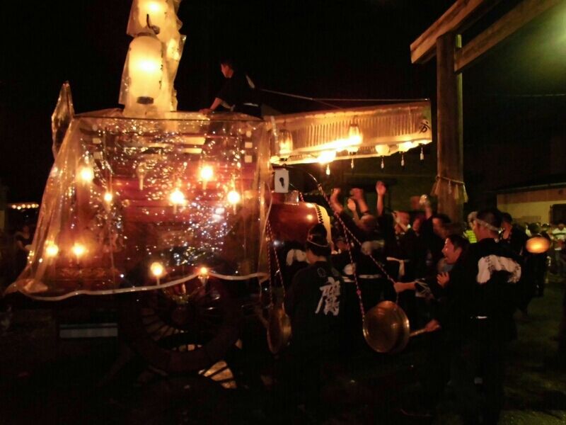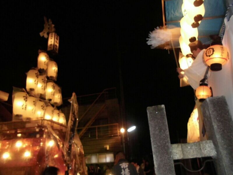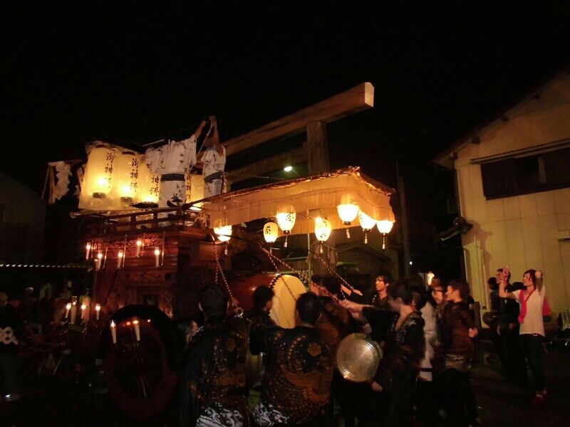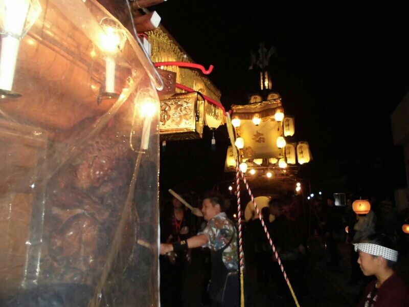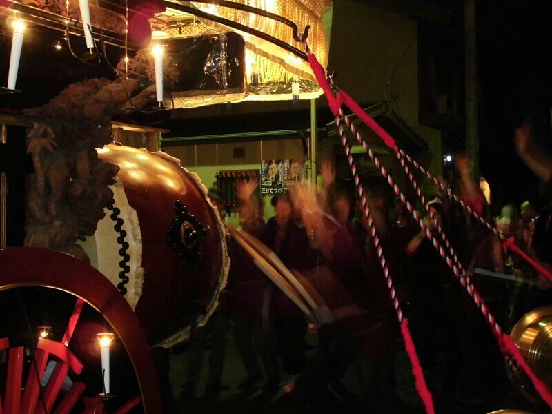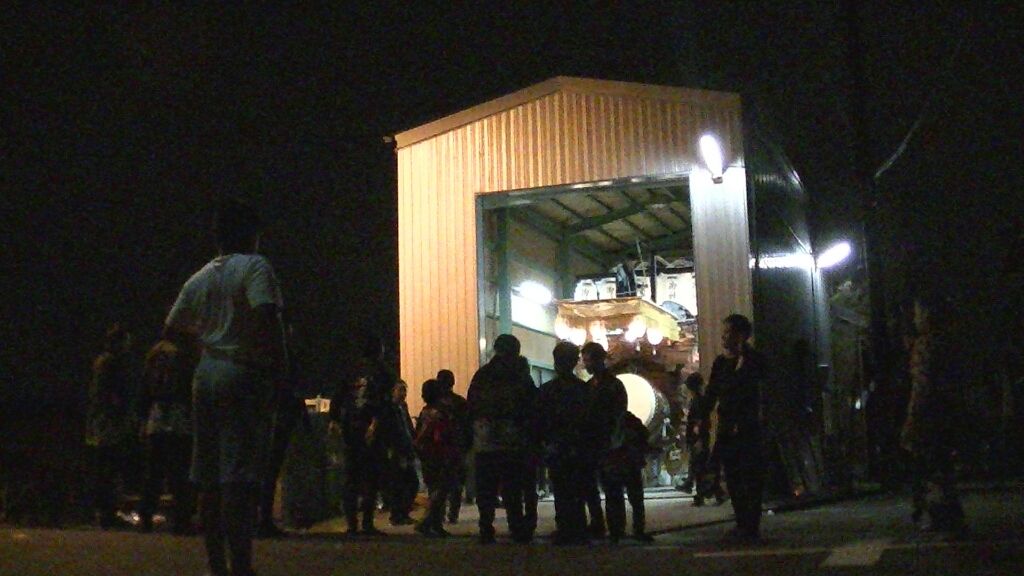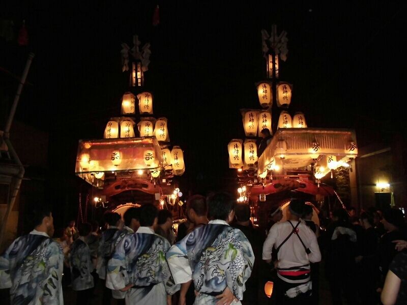 辨天町渡祭中の開勢町祭車庫前では、開勢町と市場町が曳き別れ!