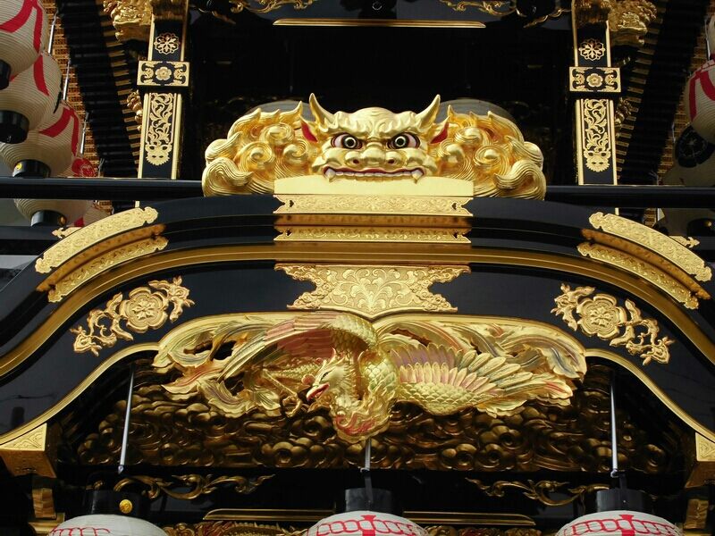 錺金具も凝っていて、前山四本柱には鳳凰。