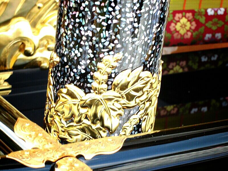 舞台には、宝尽くしの錺金具。