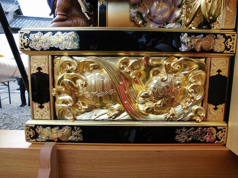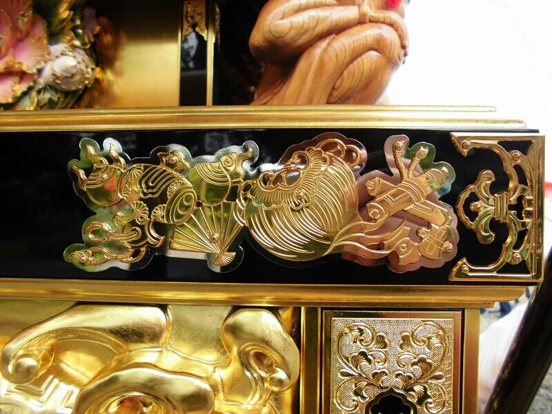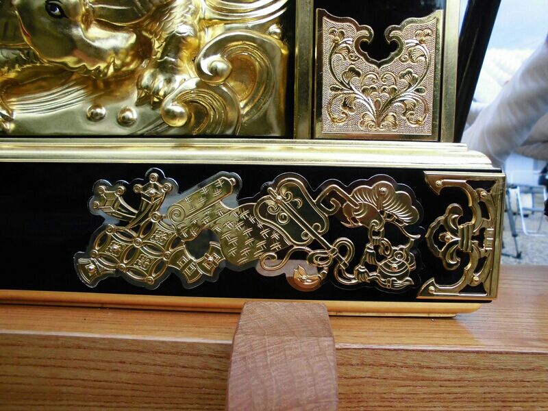 壇箱正面は箔押し、彩色無しの唐獅子。