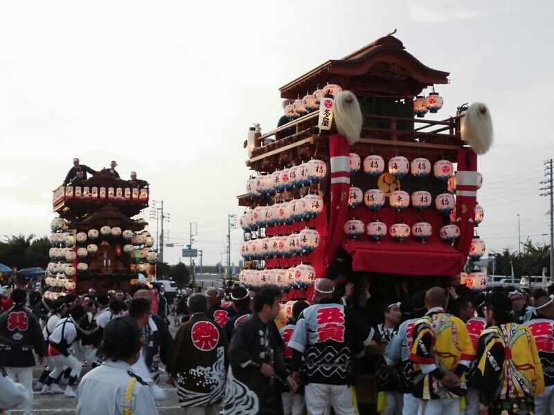 隣り合う地区ですが、祭礼日が違うために会うことの出来ない北条 神明車、多屋 海椙車。