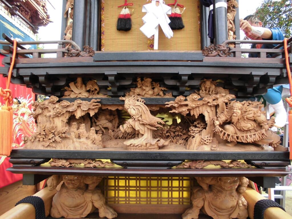 奥組 旭車の彫刻を見学。