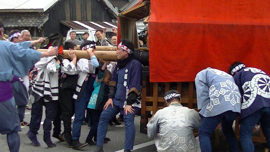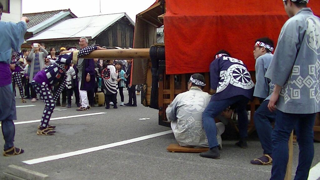 重い山車を一人で担ぎ上げるという男気溢れるもの