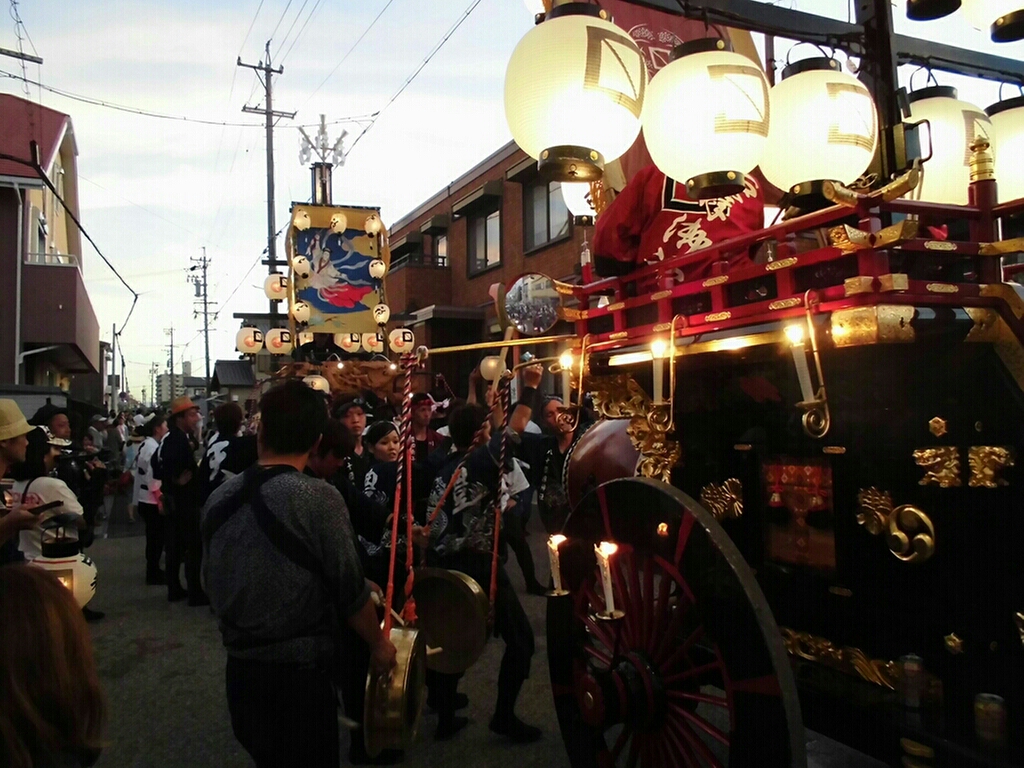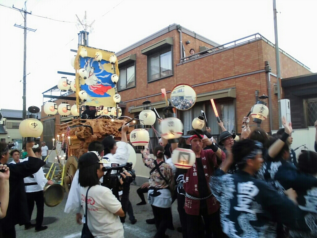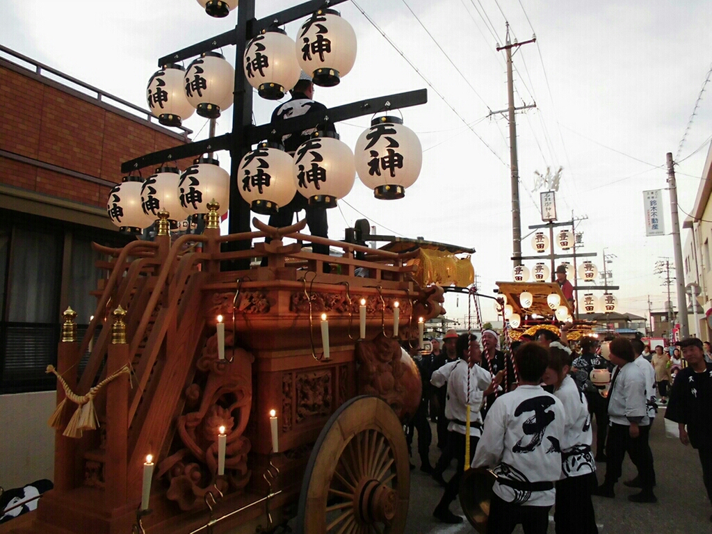 川越町 八十積椋神社石取祭(天神町、豊田曳き別れ) 二〇一五年長月廿二日 コメント数:0 コメント カテゴリ:石取祭・石採祭・石取囃子祭り日記 by 風神雷神 豊田を見た後、天神町へと向かいました。 天神町祭車は、既に近鉄川越富洲原駅近くで待機。 後から、豊田祭車が来て横並びで揃いました! その後、曳き別れです。 しばらくしてから、それぞれの地区へ帰って行きました。 【お願い】 このblogを読まれる都度、下記のバナー(広告ではありません)にクリックしていただけませんか? 皆様の応援がランキングに反映されます。 私の見学に向かう原動力ともなりますので、ご協力の程よろしくお願いいたします! ↓↓↓ にほんブログ村 にほんブログ村 「石取祭・石採祭・石取囃子」カテゴリの最新記事 < 前の記事次の記事 > コメント コメントフォーム 名前 コメント 記事の評価 リセット リセット 顔 星 情報を記憶 コメントを投稿する トラックバック