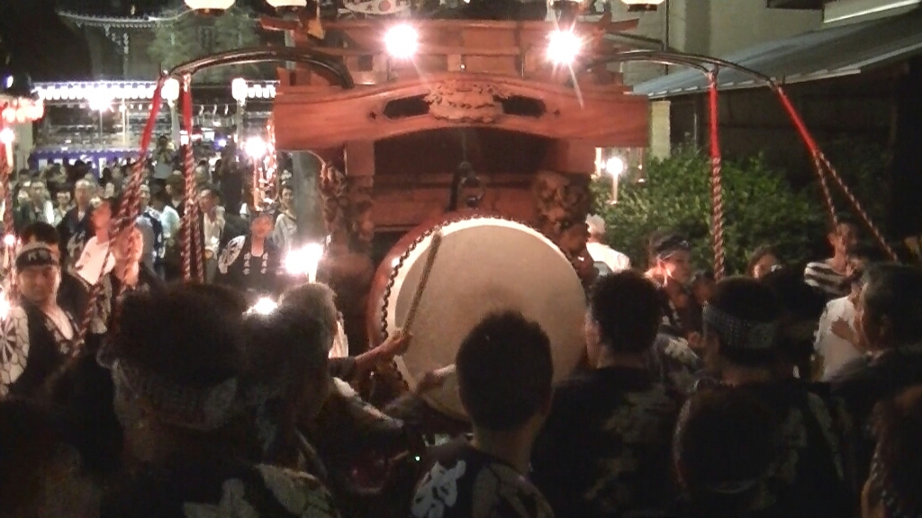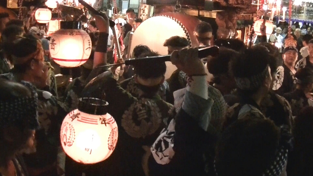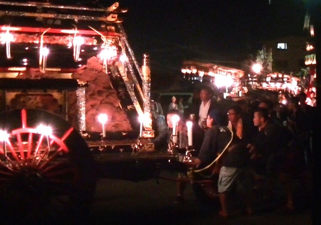 午後11時半、各組の叩き出し場所に祭車が揃います。